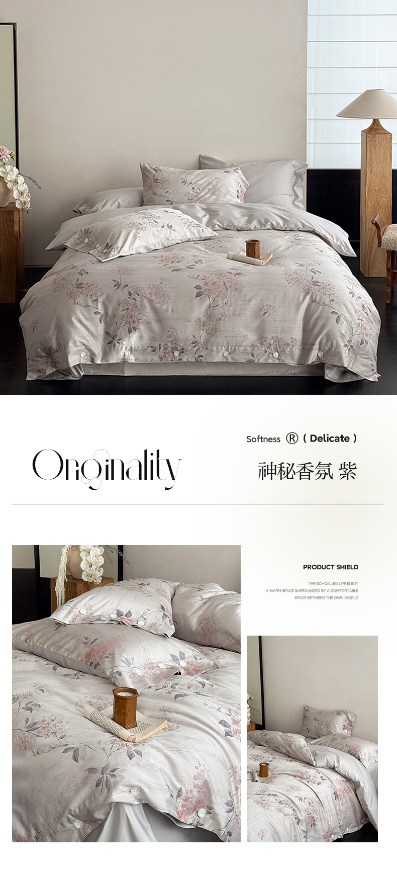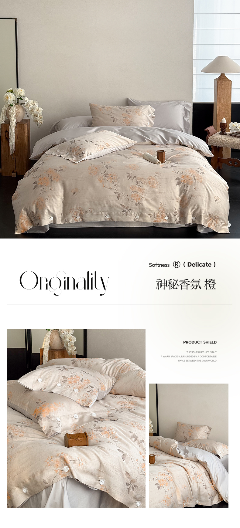 华超针织 2026新款100S纽扣款色织提花四件套-神秘香氛 神秘香氛 橙
