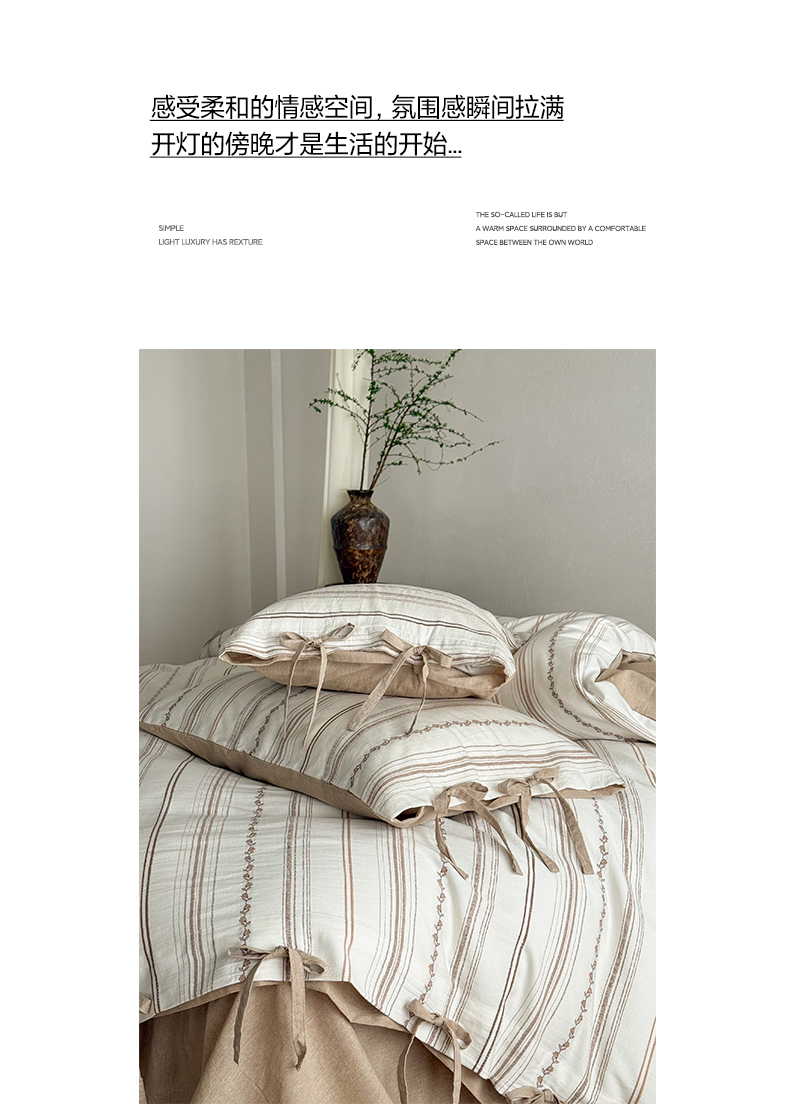 (总) 华超针织 2022新款60支肌理浮雕亲柔纱四件套,布莱垦棕绑带款,可可淡奶绑带款,摩洛哥灰绑带款,塞纳河咖绑带款,布莱垦棕纽扣款,可可淡奶纽扣款,摩洛哥灰纽扣款,塞纳河咖纽扣款