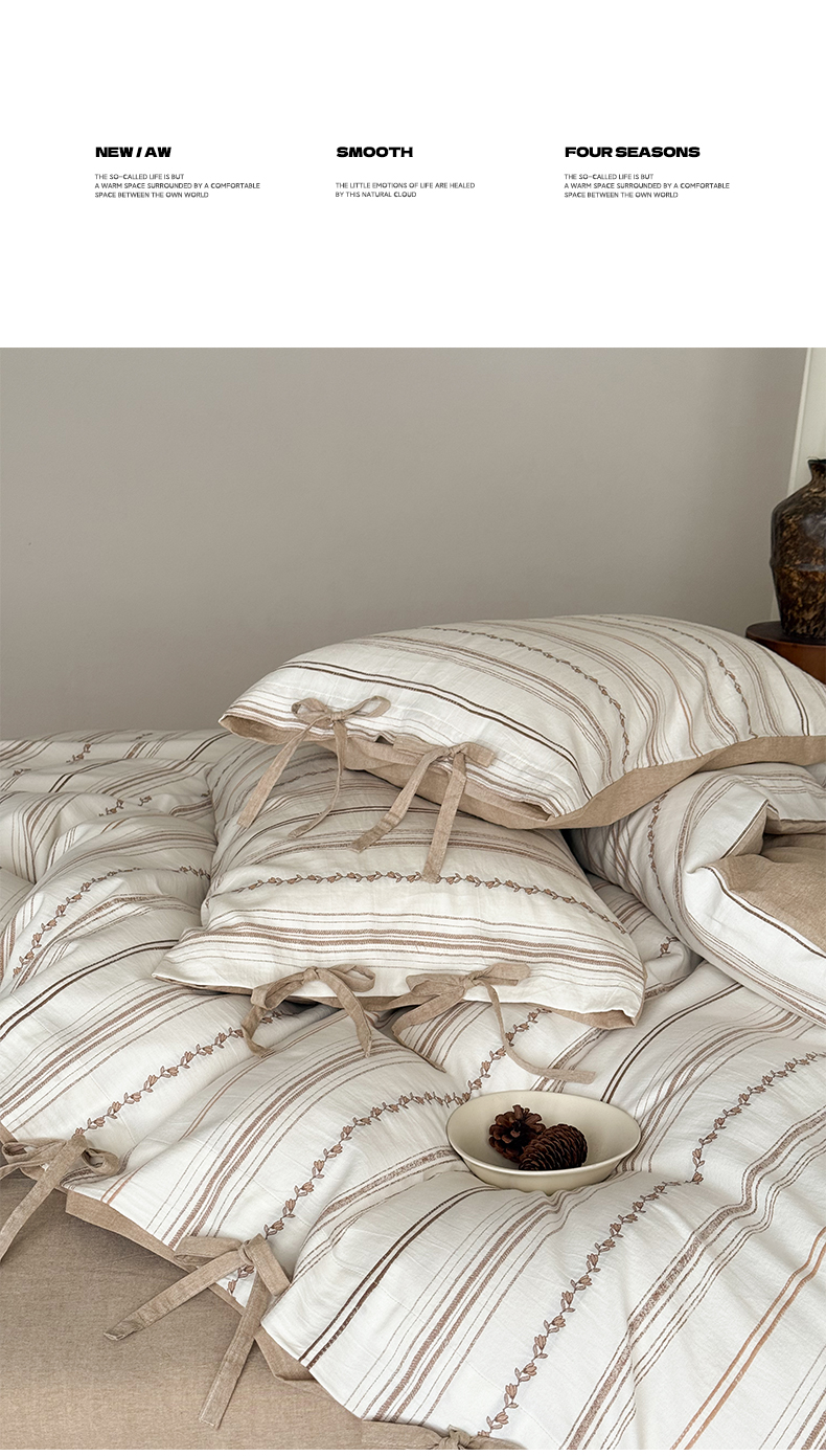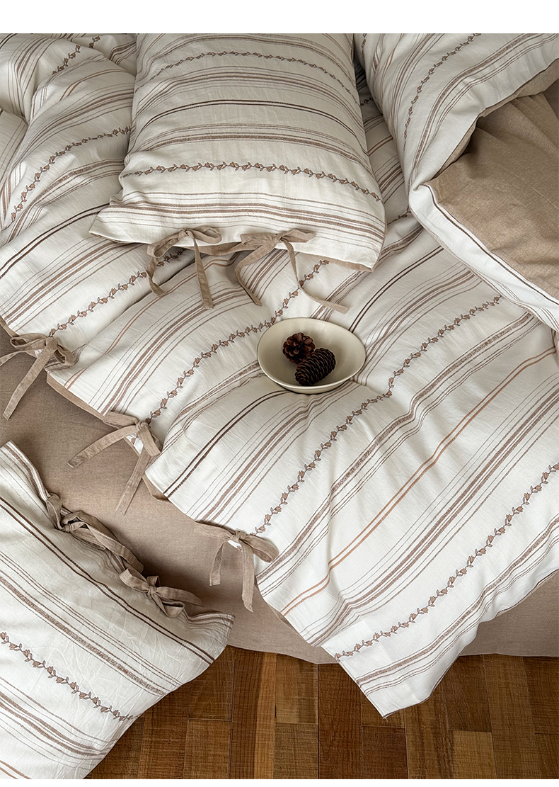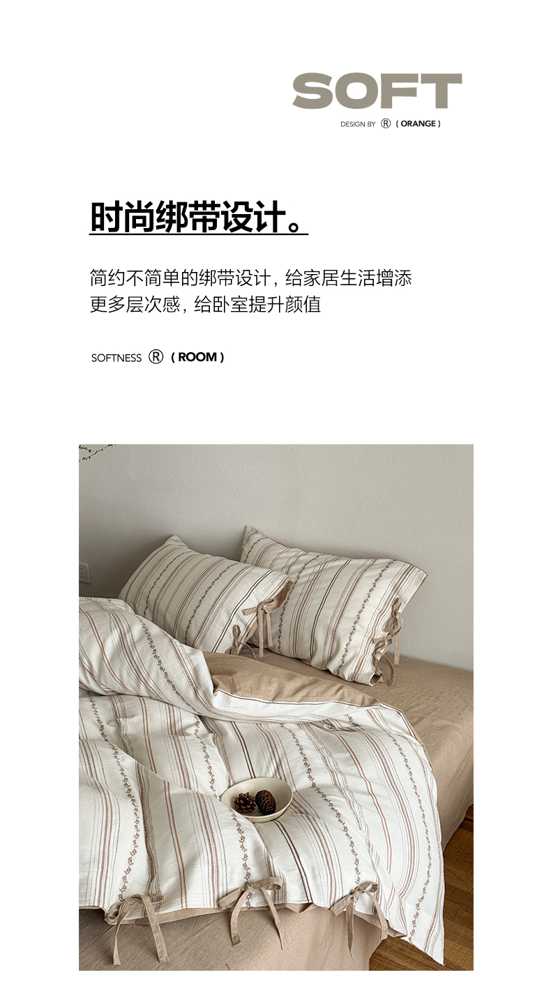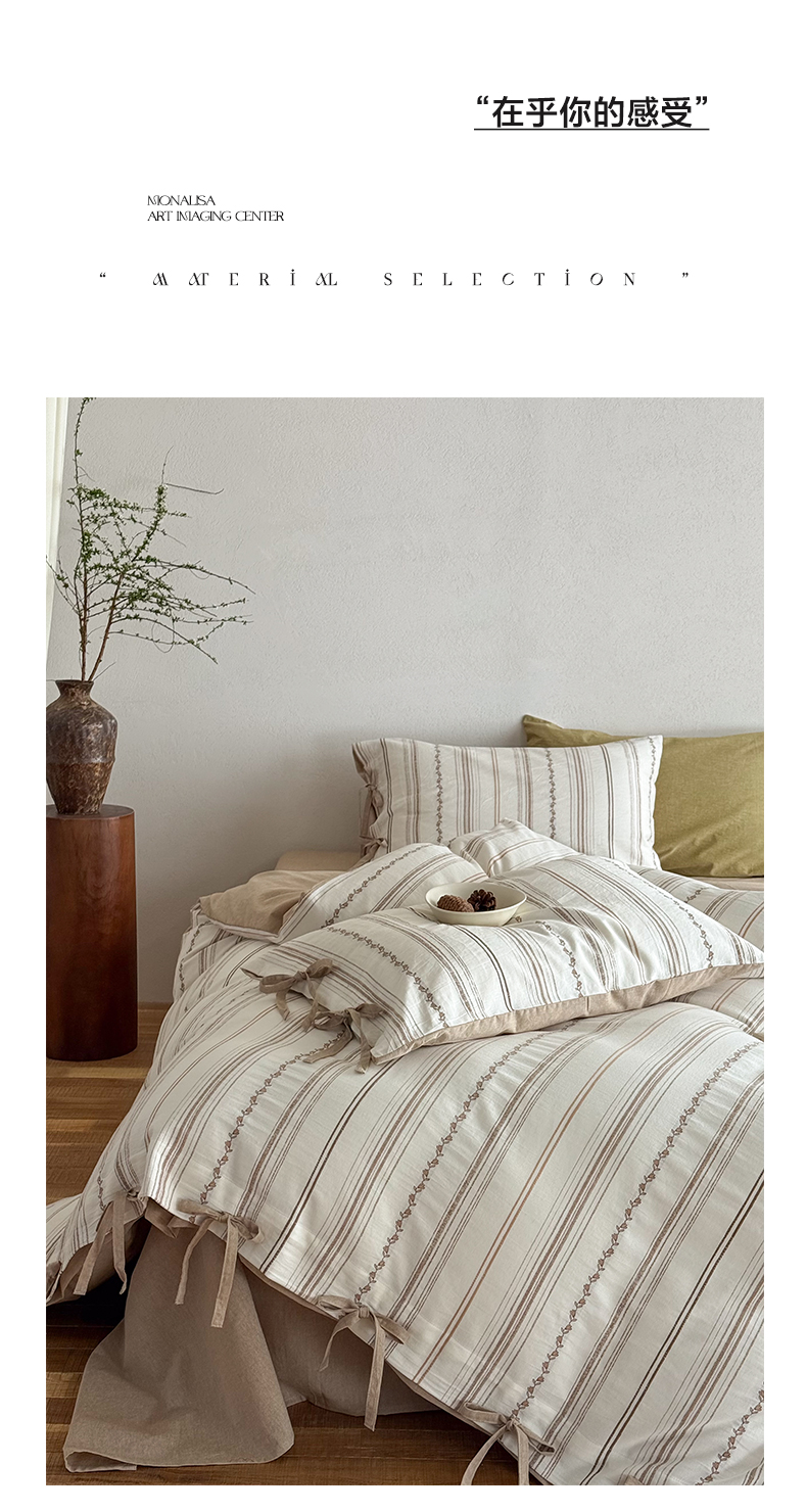 商品名称:华超针织 2026新款全棉剪花绑带款四件套-阿尔玛 阿尔玛 卡其