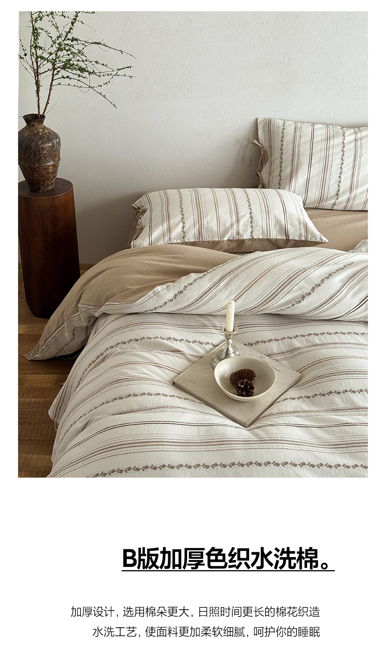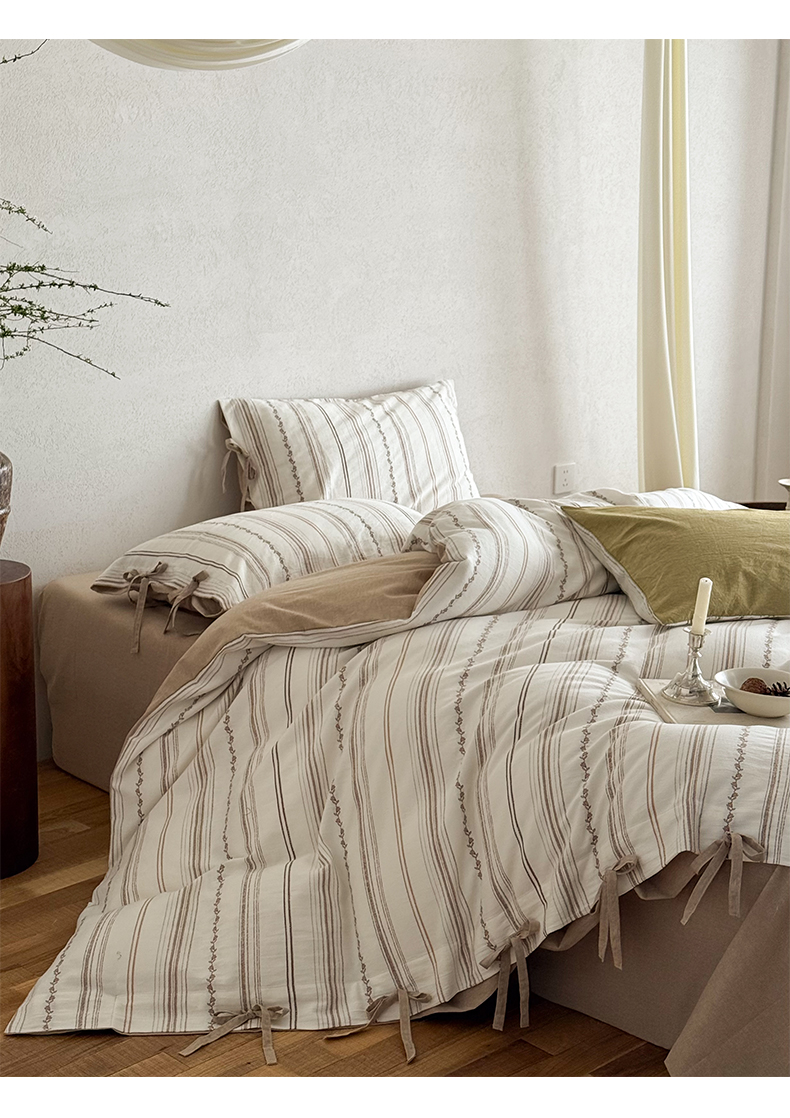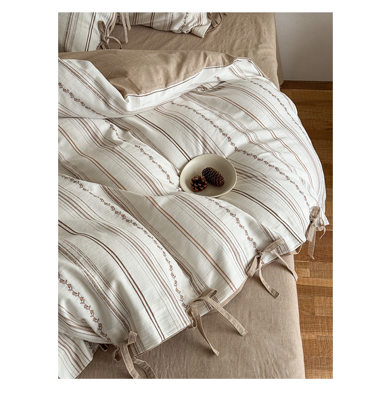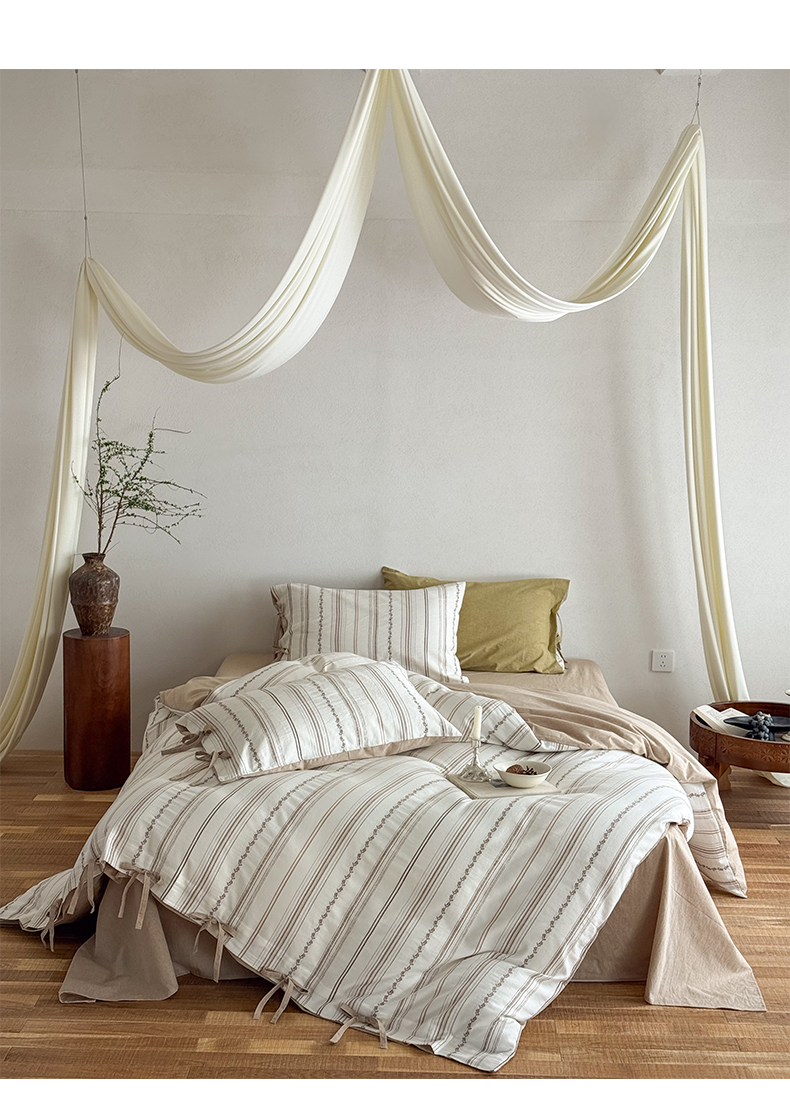商品名称:华超针织 2026新款全棉剪花绑带款四件套-阿尔玛 阿尔玛 卡其