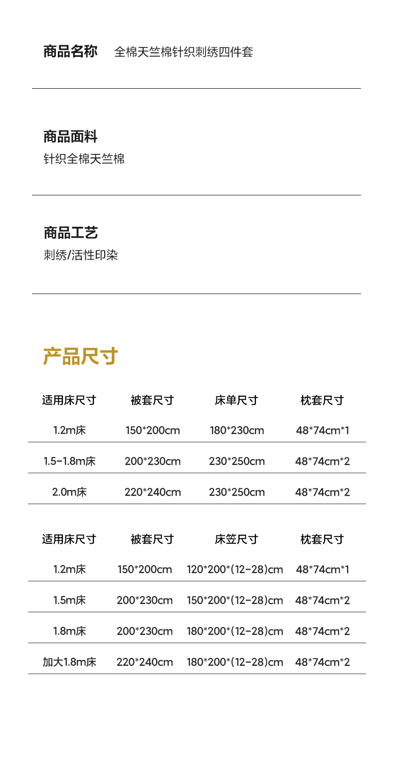 1.8m床笠款四件套 | ¥155.00 |