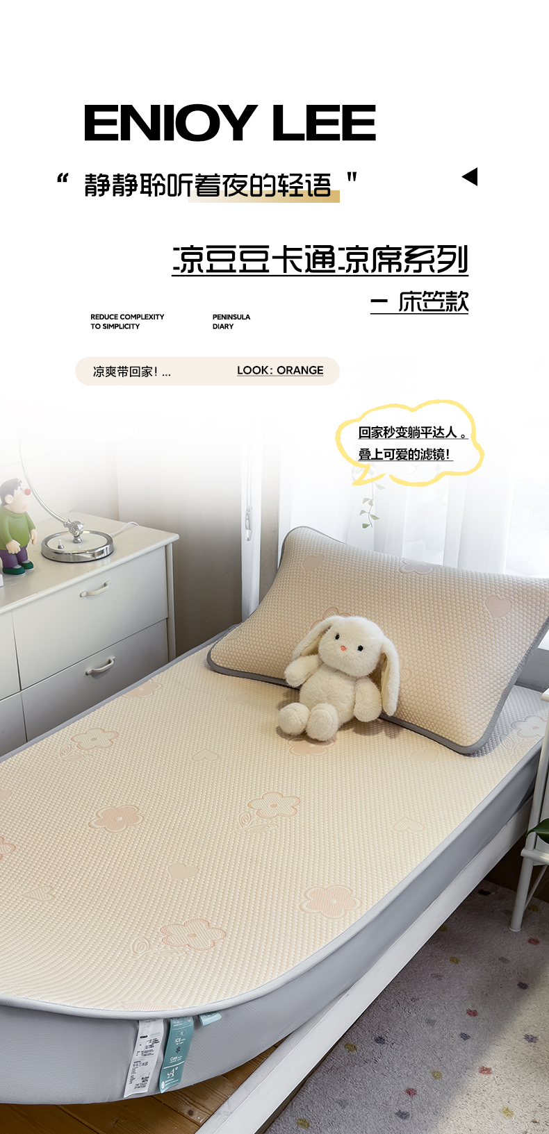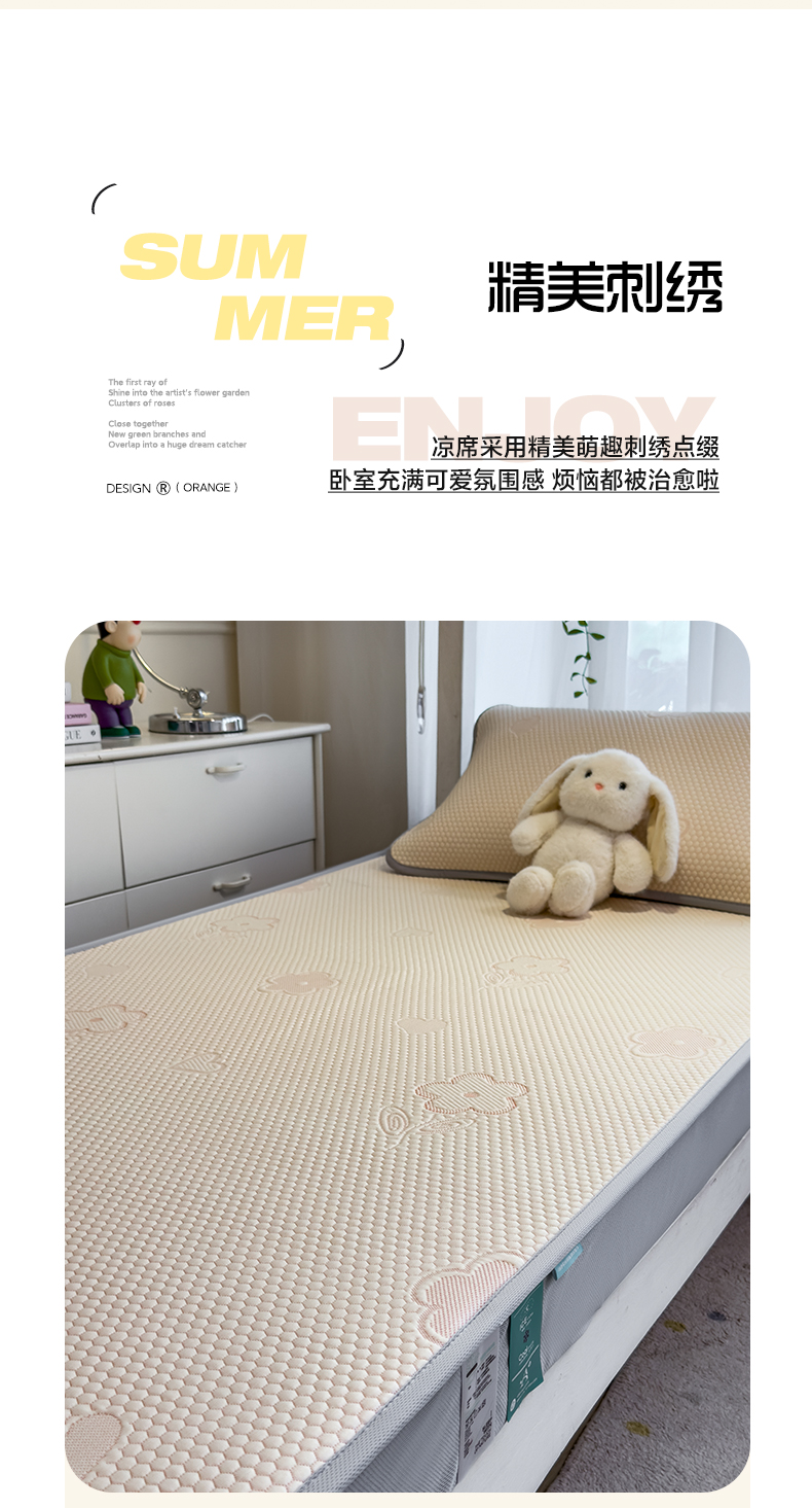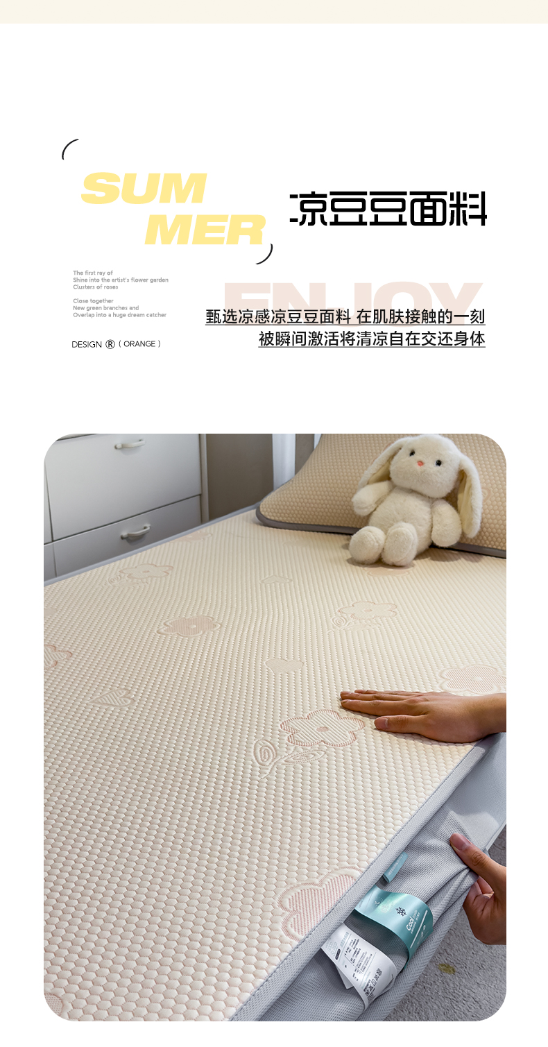 (总)凯罗 2026春夏凉豆豆小红书爆款A类乙纶PE凉豆豆床席款可水洗床席,波点草莓-粉,布丁萌萌熊,小萌狗,小南瓜-桔