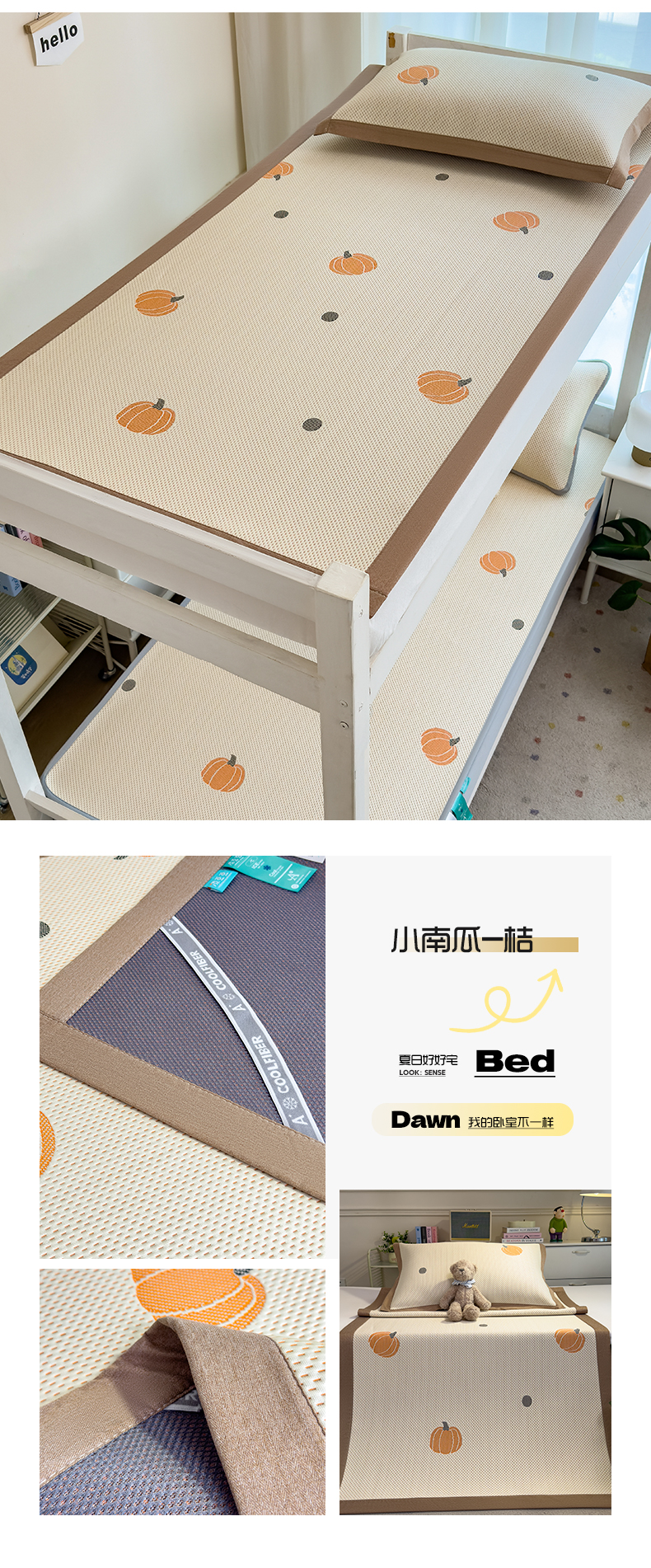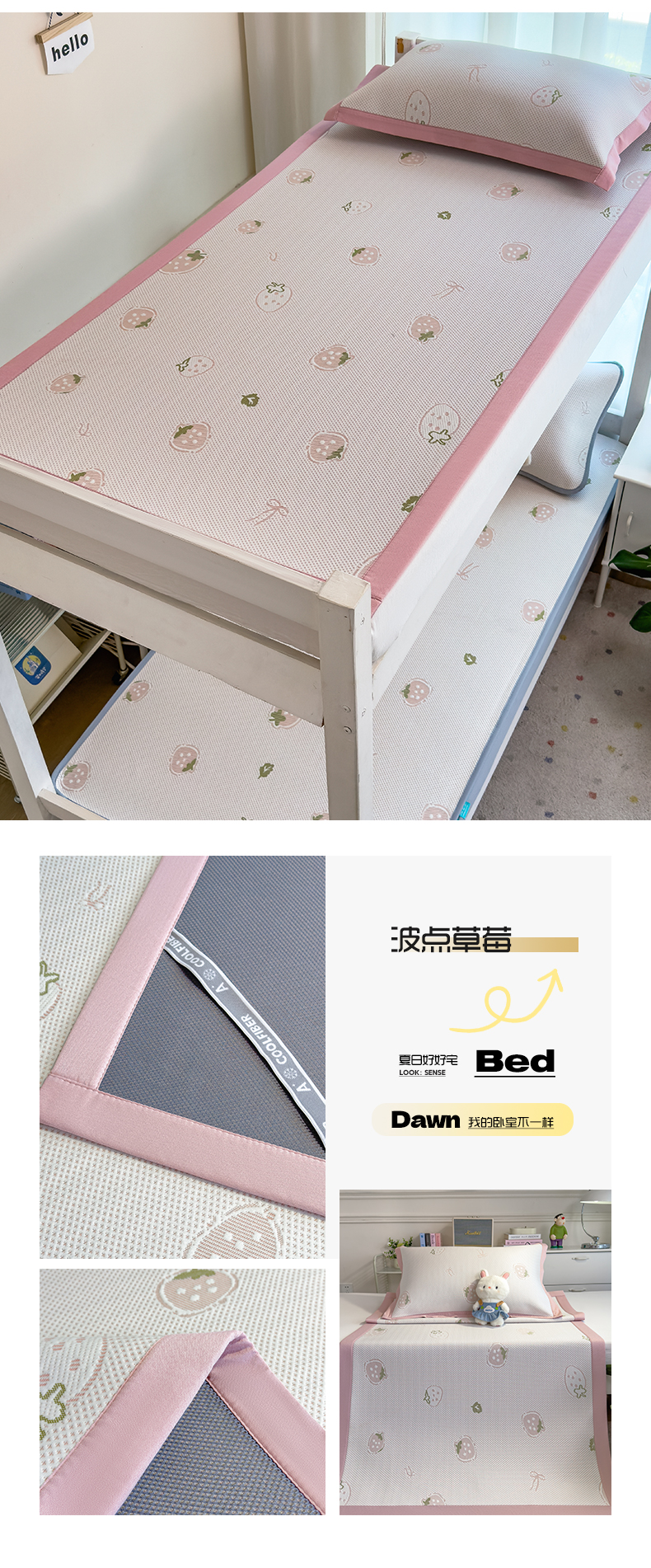 • 91家纺网 家纺一手货源 找家纺 (总)凯罗 2026春夏凉豆豆小红书爆款A类乙纶PE凉豆豆床席款可水洗床席,波点草莓-粉,布丁萌萌熊,小萌狗,小南瓜-桔