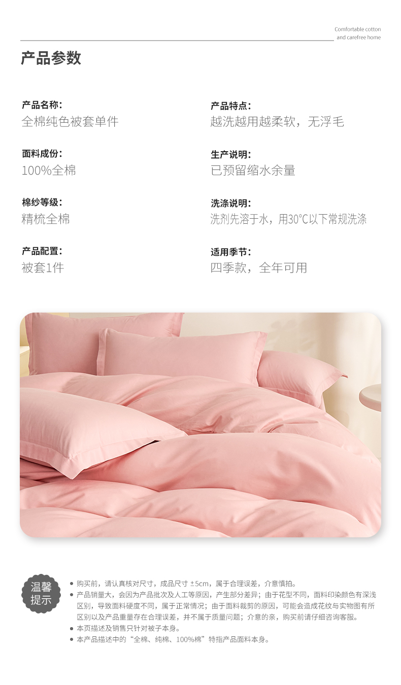 商品名称:元元家居(元元被业) 2026新款全棉纯棉13372套件及单品【纯色款】-单被套被套单件 果粉