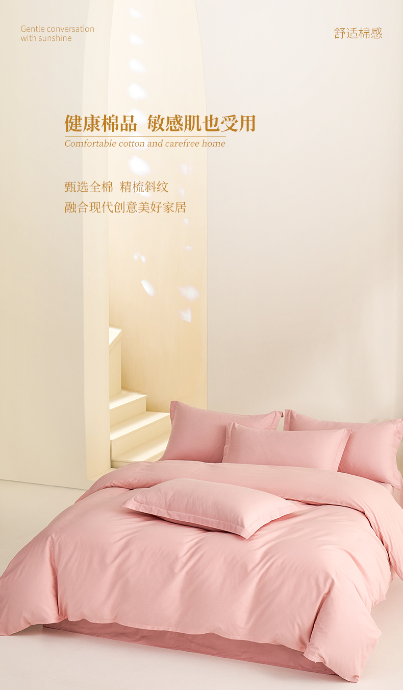 (总)元元家居(元元被业) 2026新款全棉纯棉13372床盖款四件套-纯色款,果粉,罗兰紫,麦田绿,天梦蓝,炫彩粉,雅灰