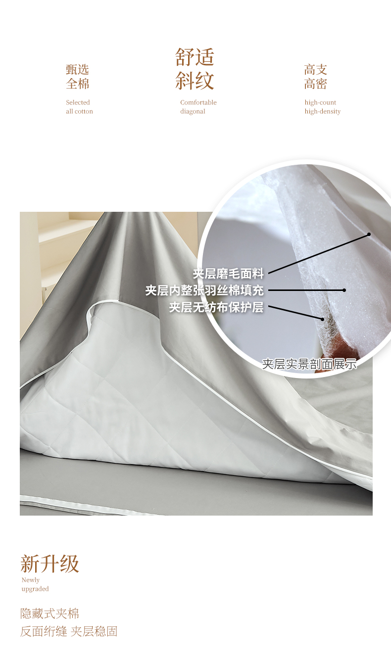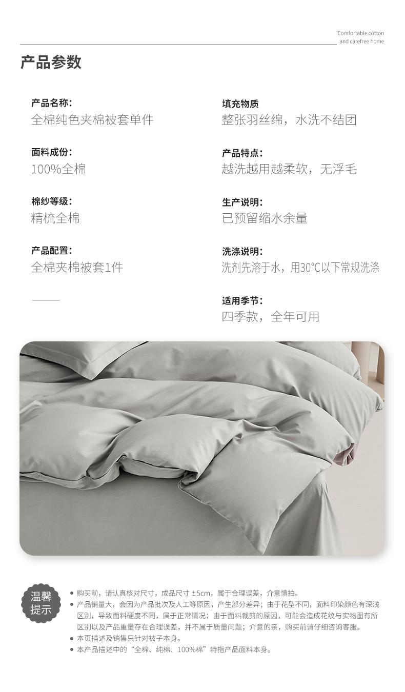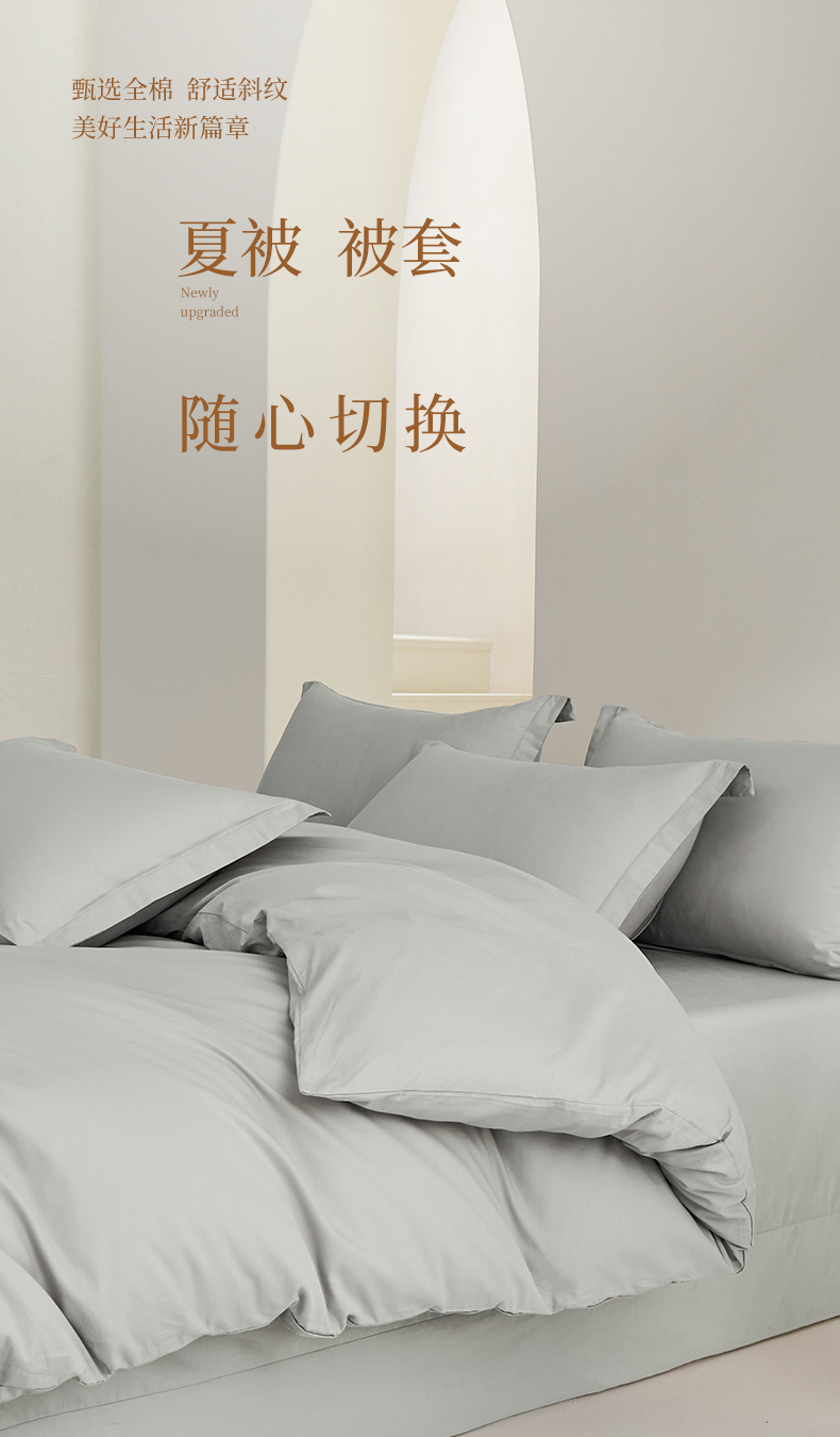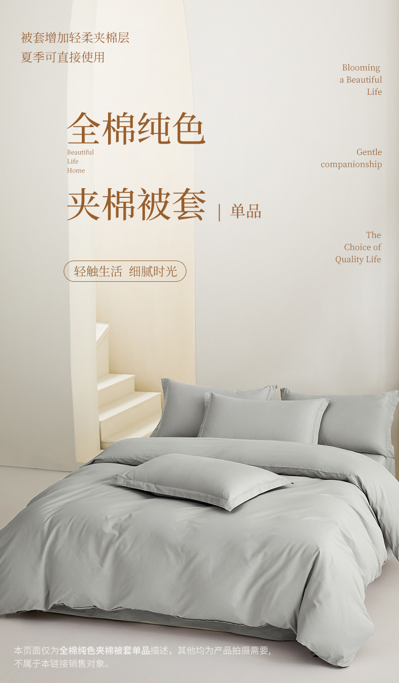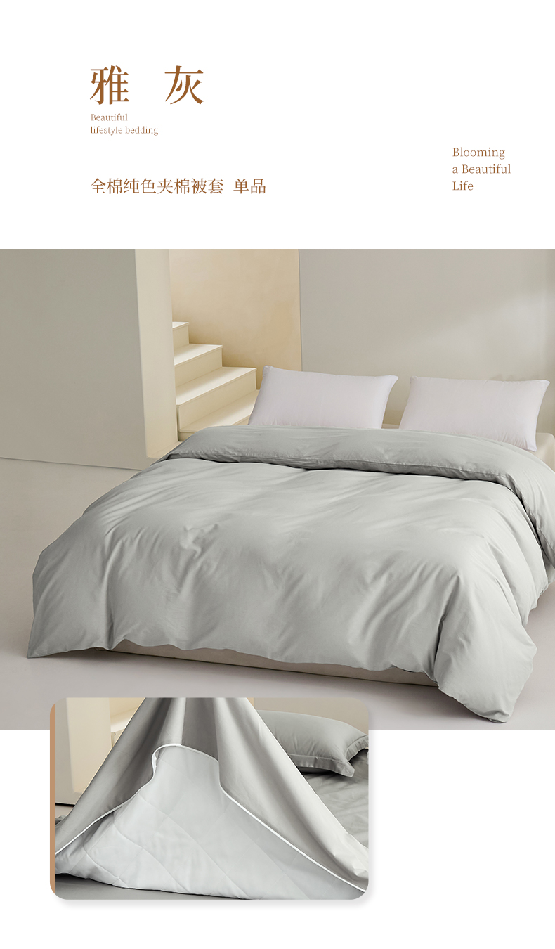 商品名称:元元家居(元元被业) 2026新款全棉纯棉13372套件及单品【纯色款】-单夹棉被套夹棉被套单件 雅灰