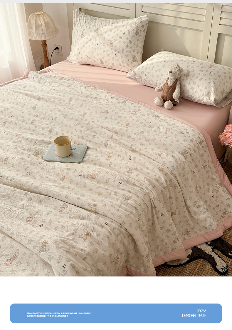 当前位置: 91家纺网 > 商品网购 > 床品套件 > 四件套 > 夏被四件套 > 盛凡家纺 2026新款小清新抗菌夏被夏凉被空调被被子被芯夏被四件套 花枝小兔