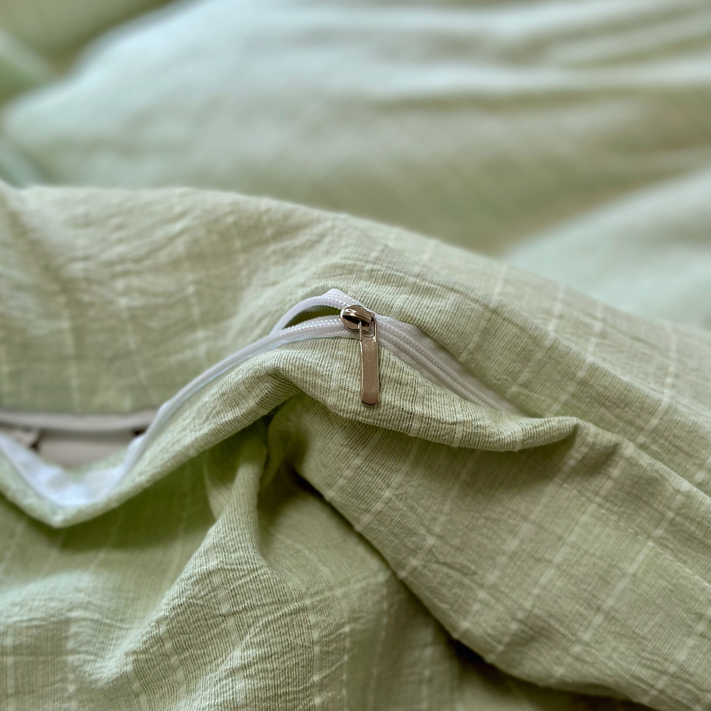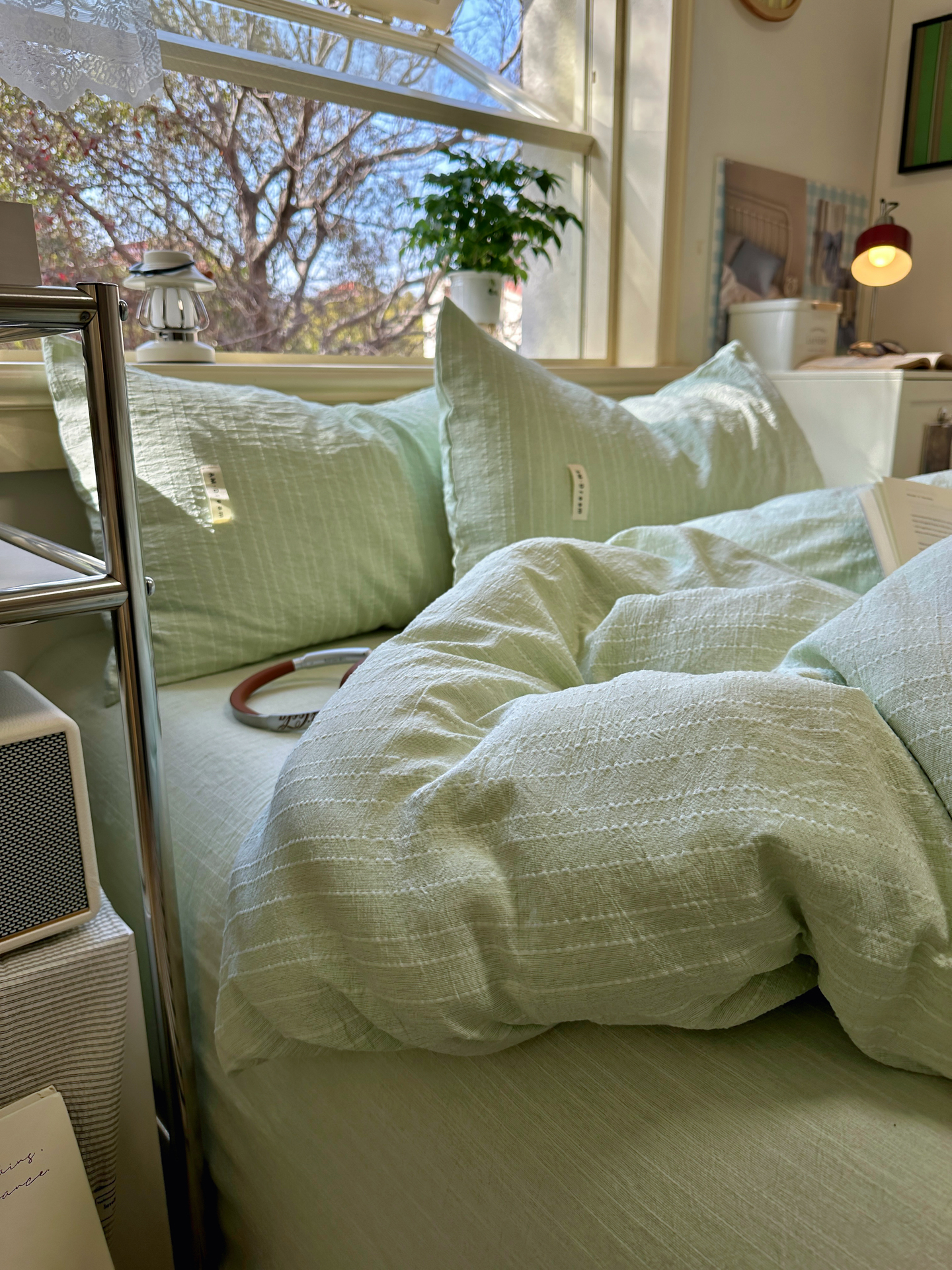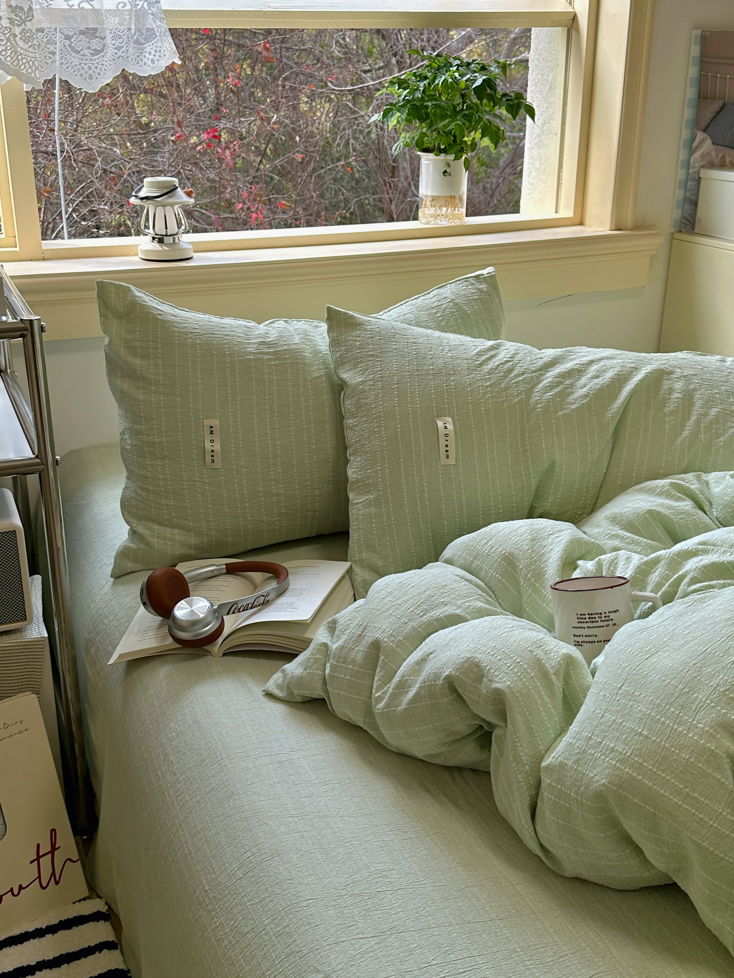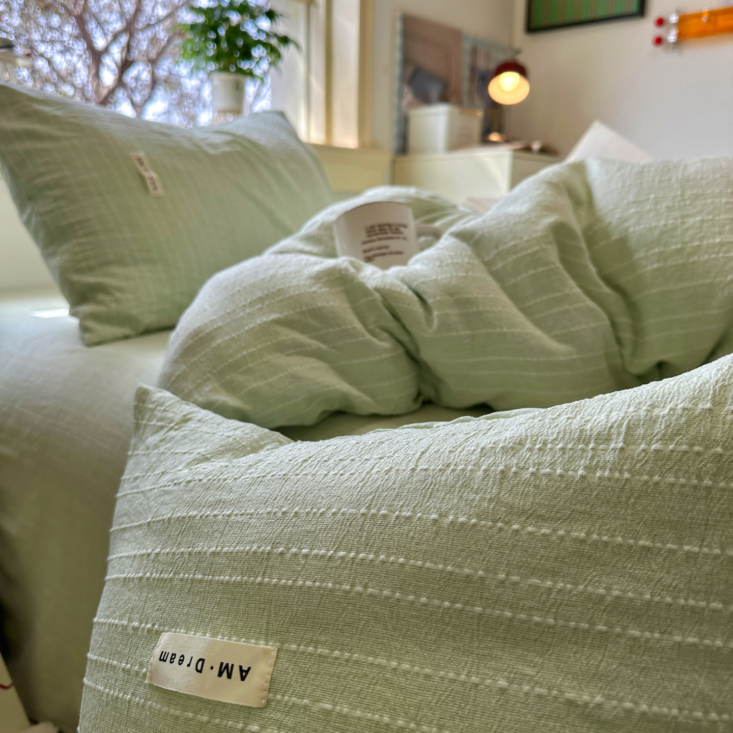 当前位置: 91家纺网 > 商品网购 > 床品套件 > 四件套 > 化纤普通四件套 > 优兰朵家纺 2026新款简约素色亚麻风纯色无印四件套 淡绿-素然