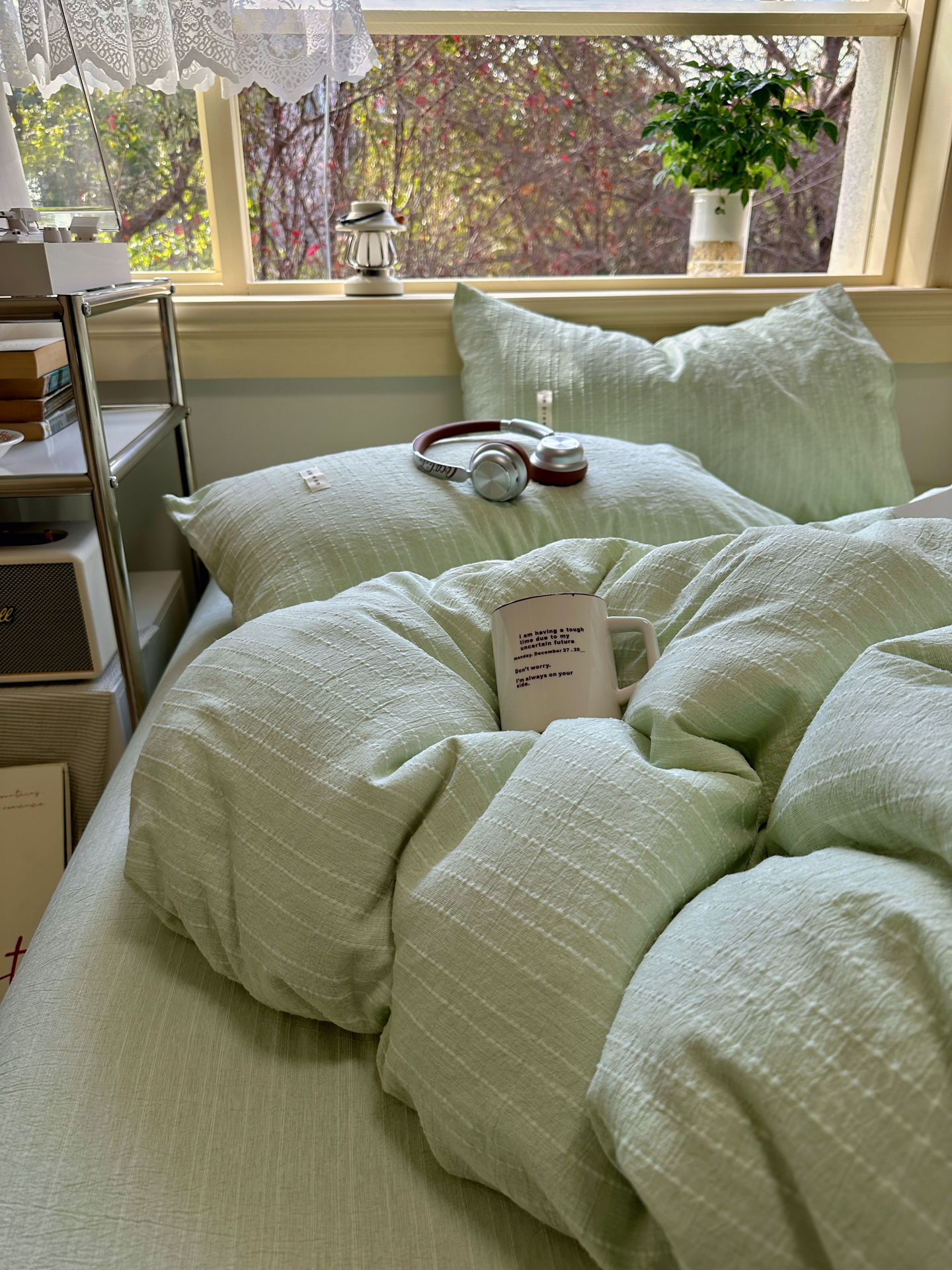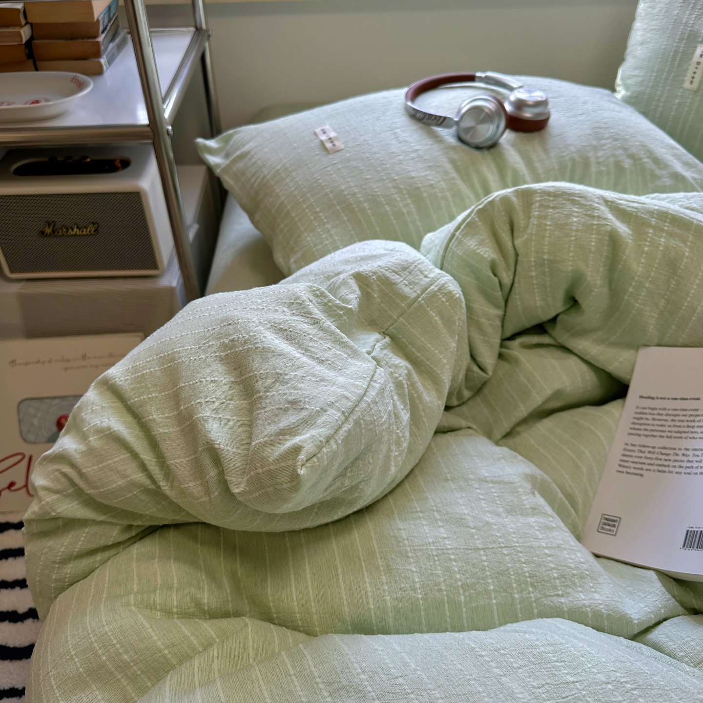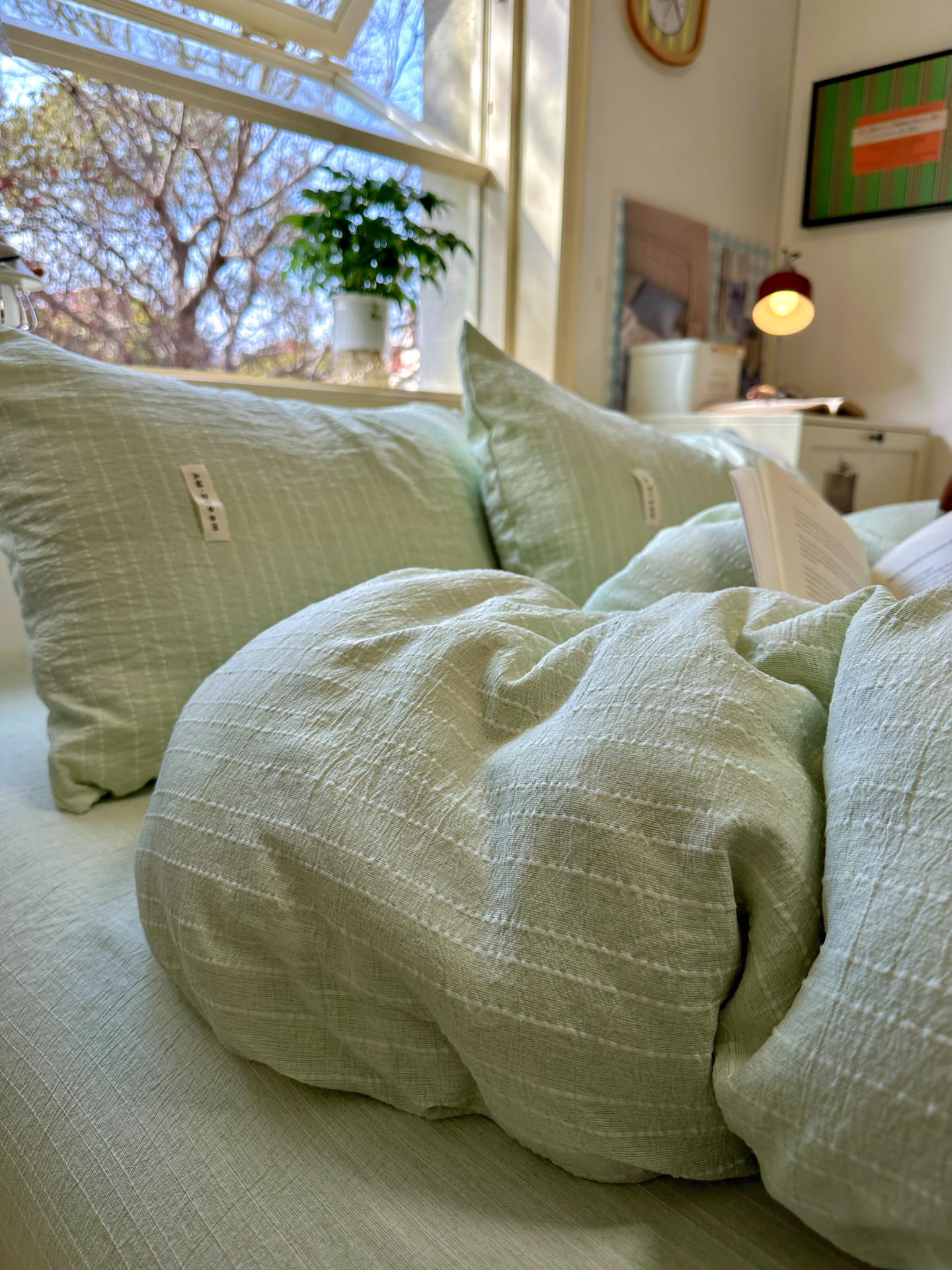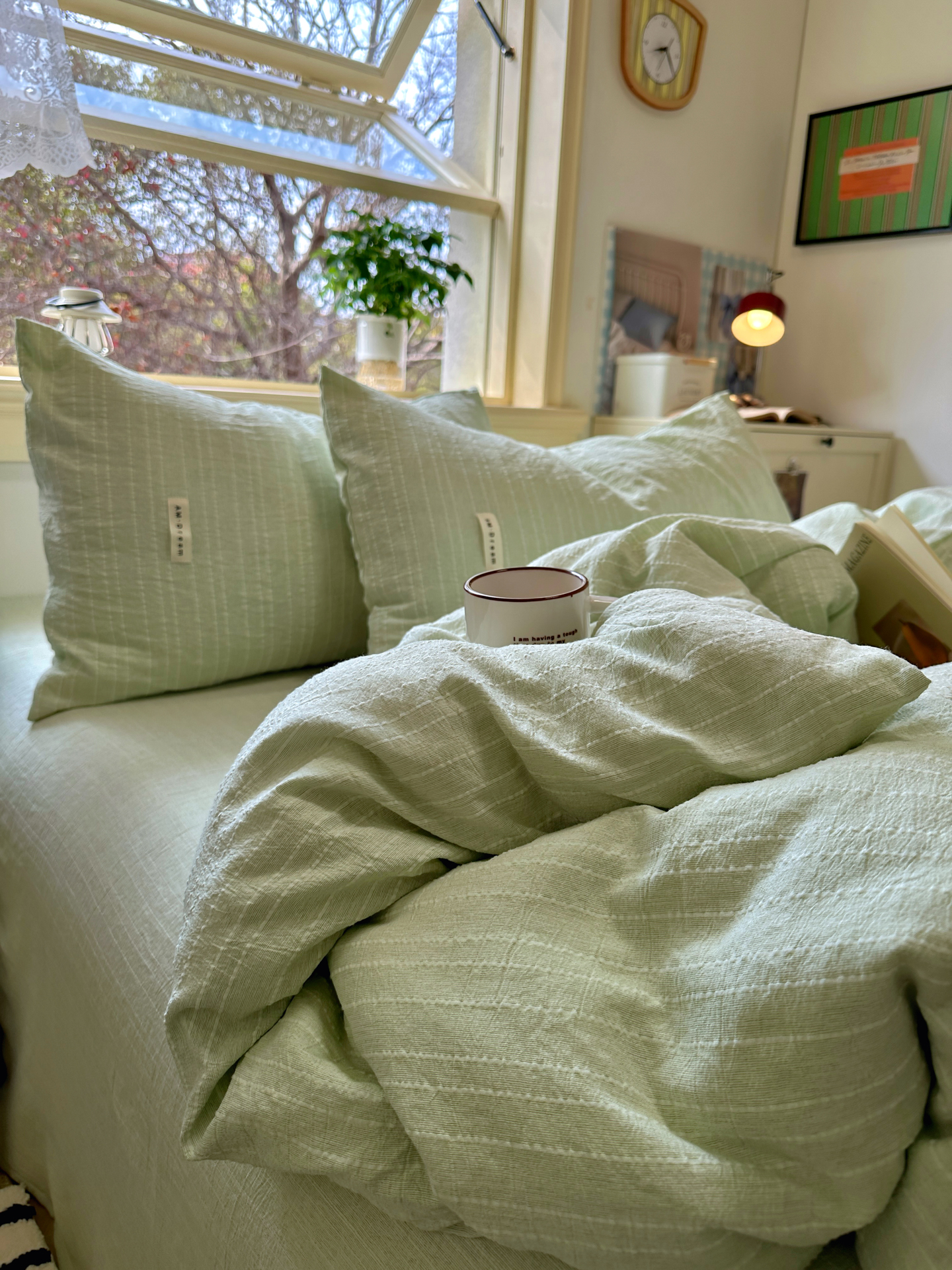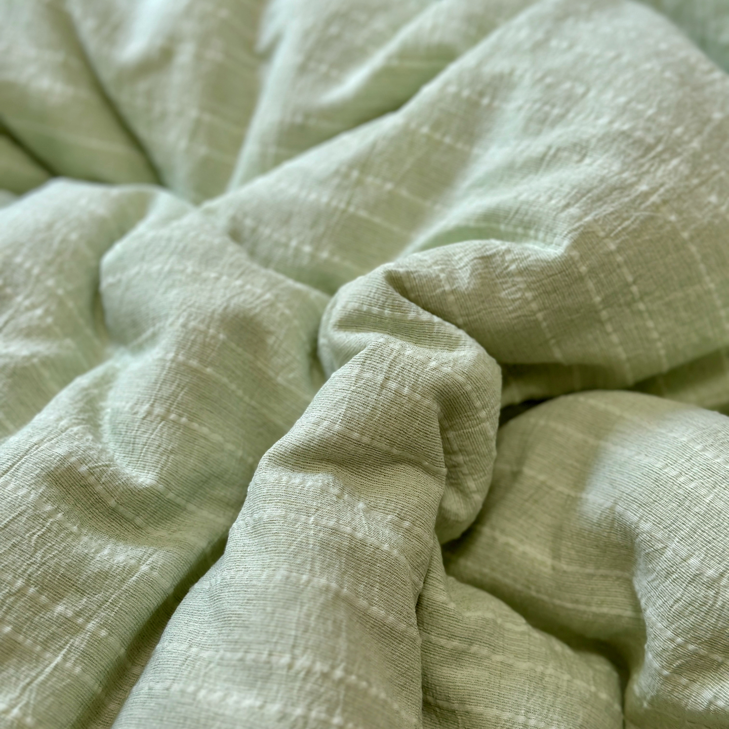 当前位置: 91家纺网 > 商品网购 > 床品套件 > 四件套 > 化纤普通四件套 > 优兰朵家纺 2026新款简约素色亚麻风纯色无印四件套 淡绿-素然