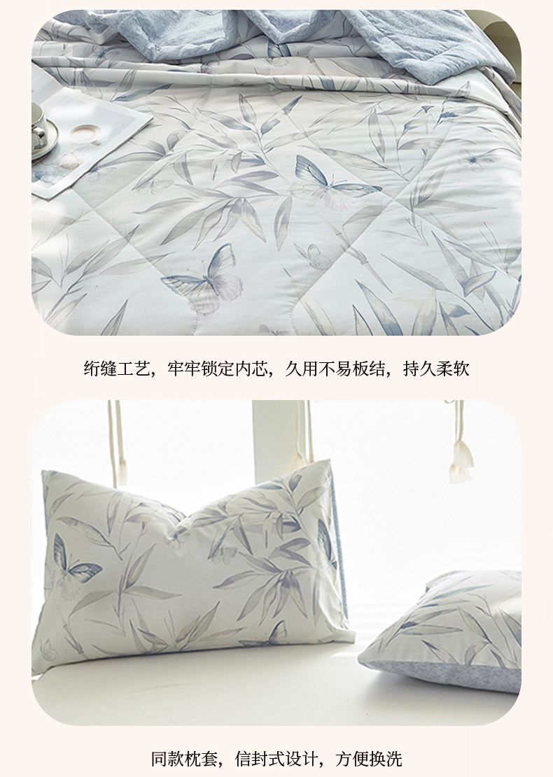 商品名称:铺尚美家纺 2026新款双面全棉羽丝空调被夏凉被单夏被 叶影幽梦