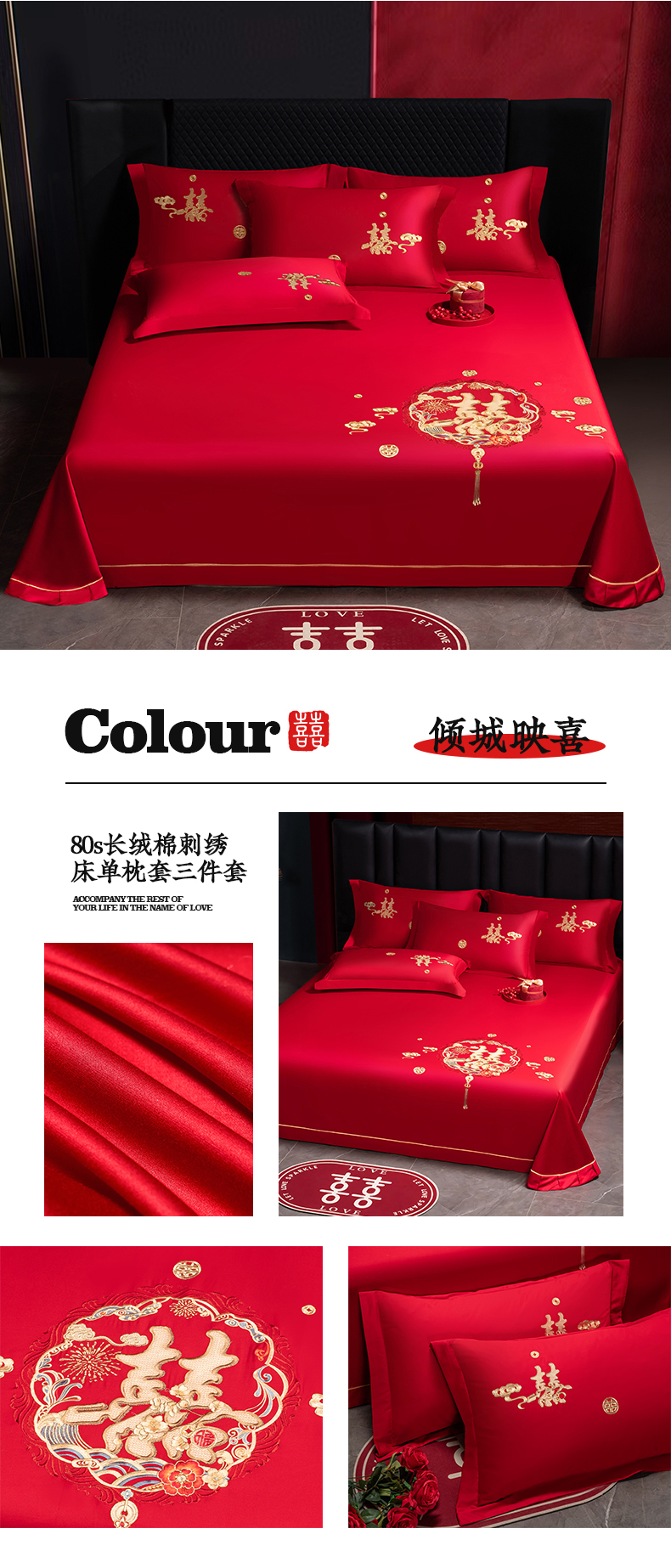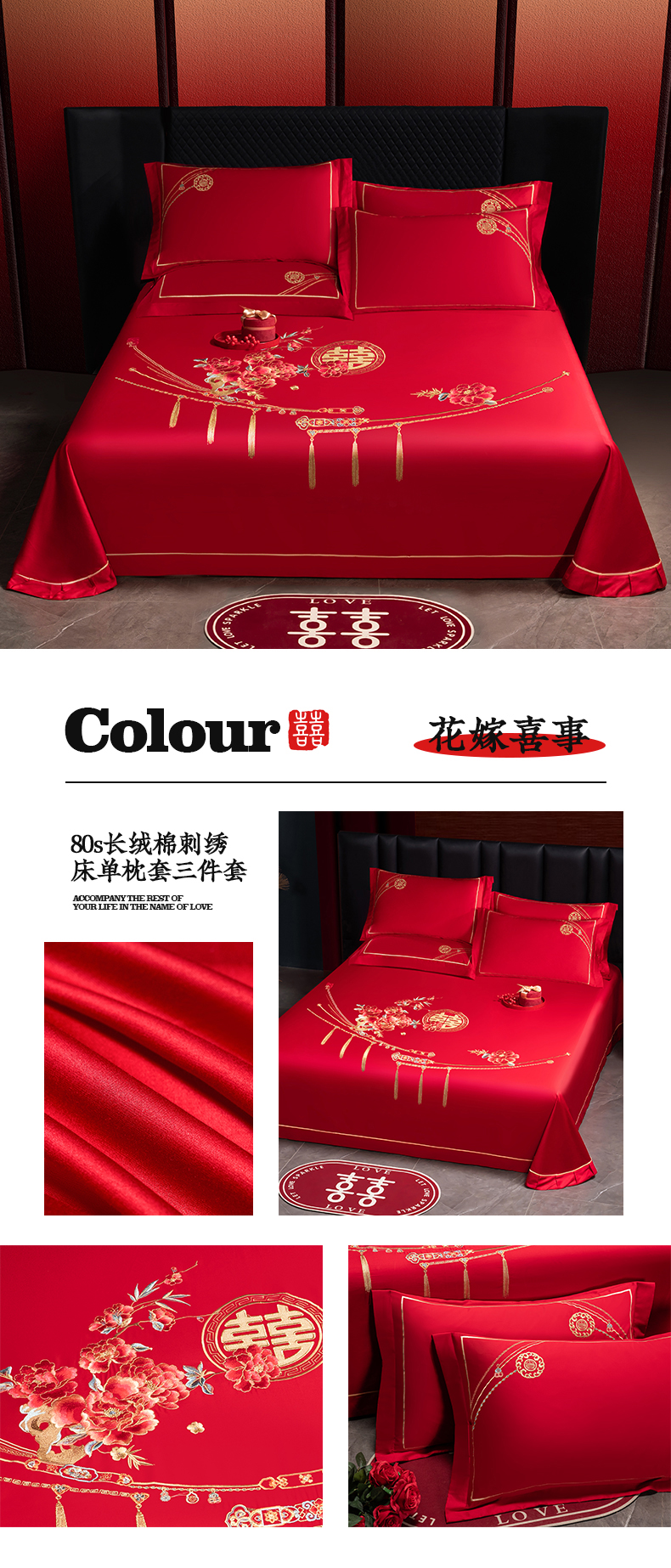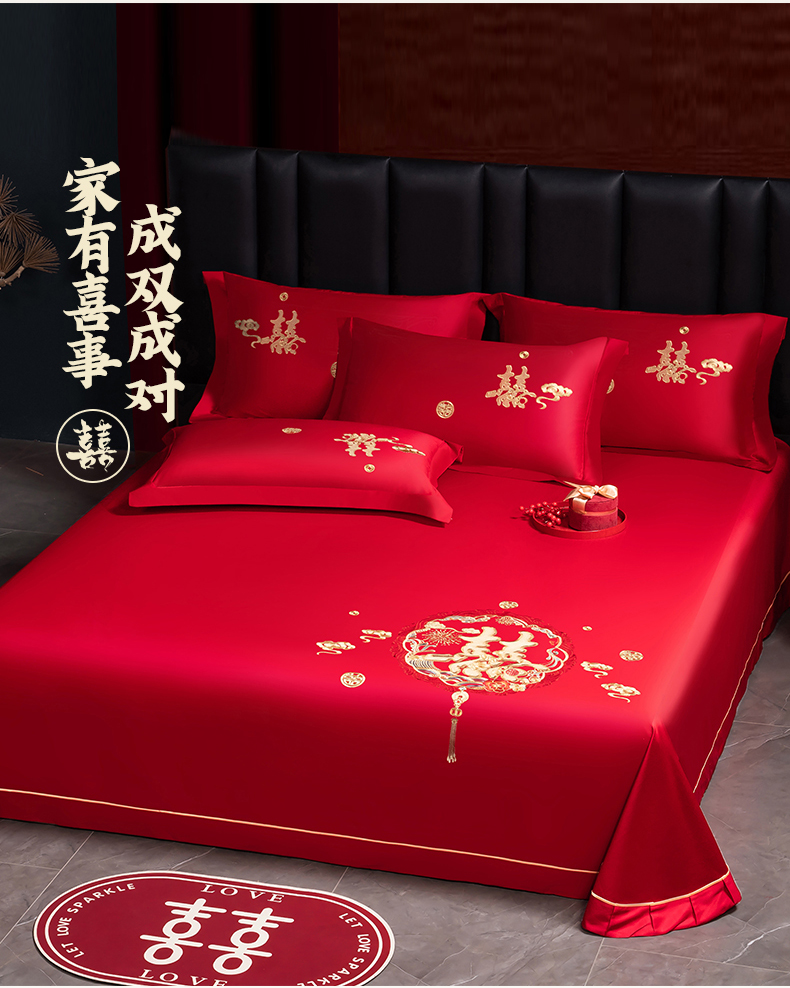 (总)千禧家纺 2024新款双面长绒棉磨毛加厚保暖绣花婚庆套件,大喜大吉,鸿运贺禧,欢乐喜事,欢喜,美满爱情,喜上眉梢,喜约,相伴一生,挚爱