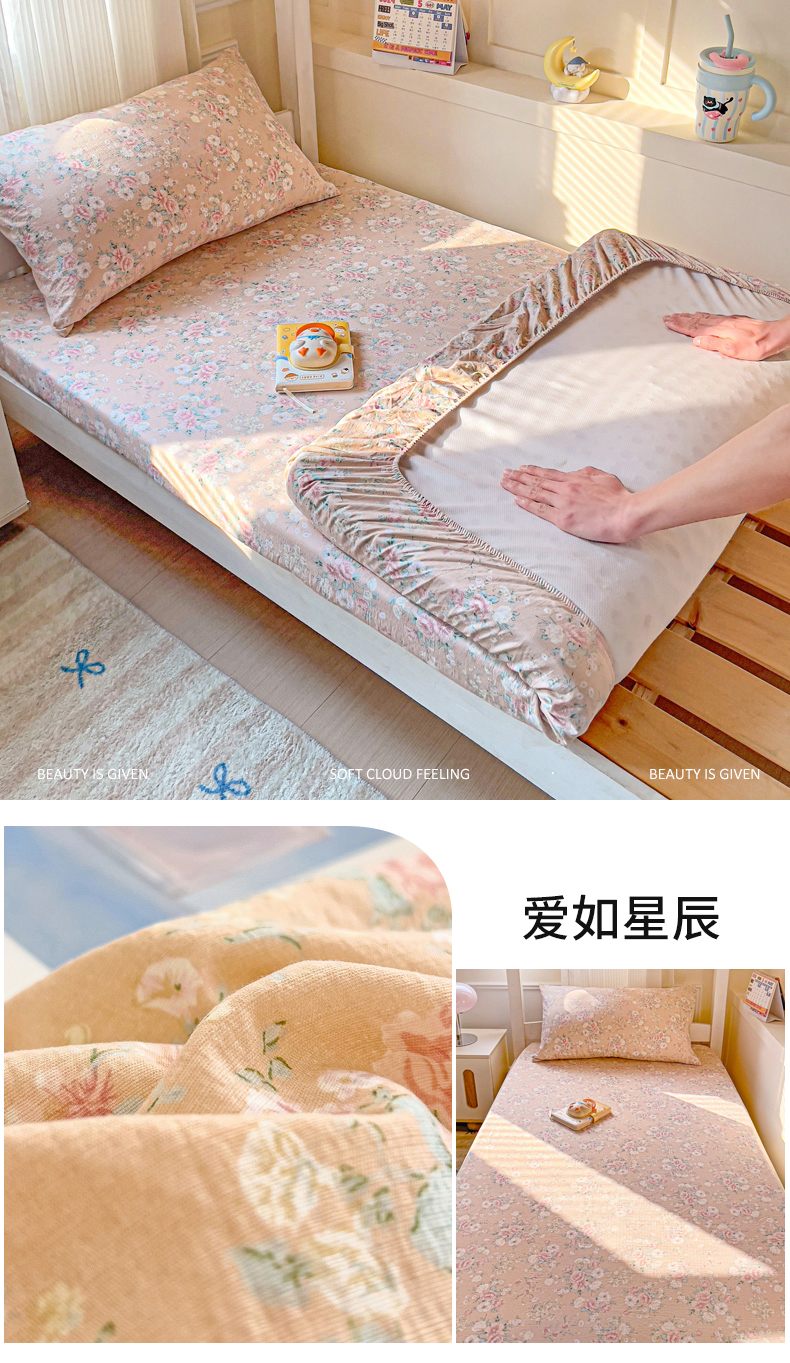 (总)纽缦家纺 2025新款纯色提花学生冰丝床笠,薄荷绿,豆绿,复古蓝,海青,麦穗黄,梦幻紫,奶茶棕,水光蓝,温雅玉,星空灰