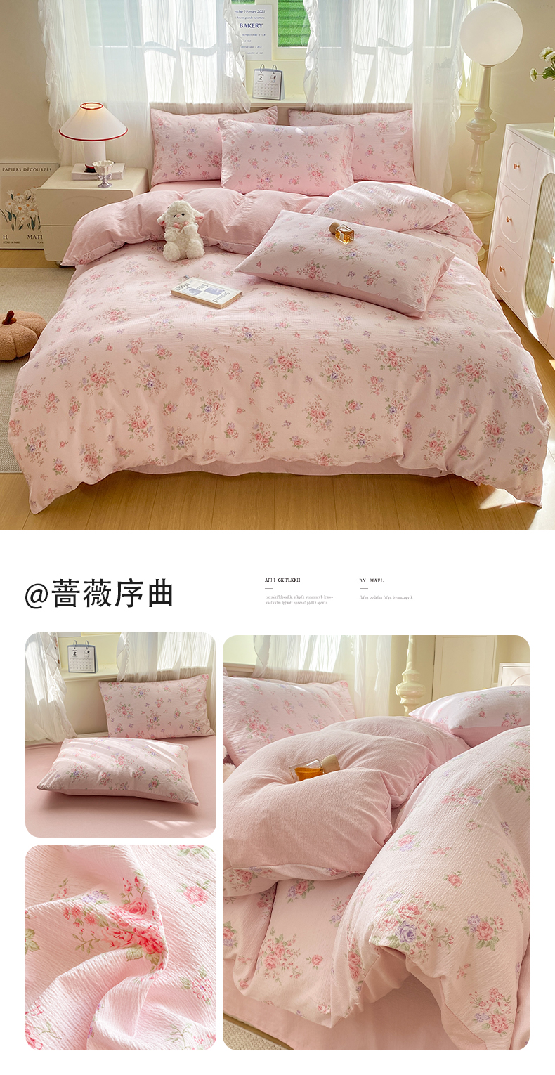 当前位置: 91家纺网 > 商品网购 > 床品套件 > 四件套 > 其它四件套 > 红日子纺织品 2026春夏新款云感小清新皱皱纱四件套 山花烂漫