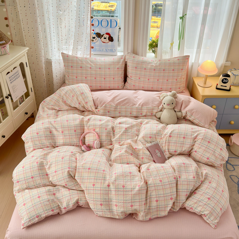 (总)佳鸿家纺 2026新款【提供买家秀】110克高克重云朵棉四件套学生宿舍三件套床单款床笠款,黄油童话,海盐奶格,眠花小屿,奶糖动物园,奶杏宠语,桃粉熊心,雾蓝软熊,雾里春芽