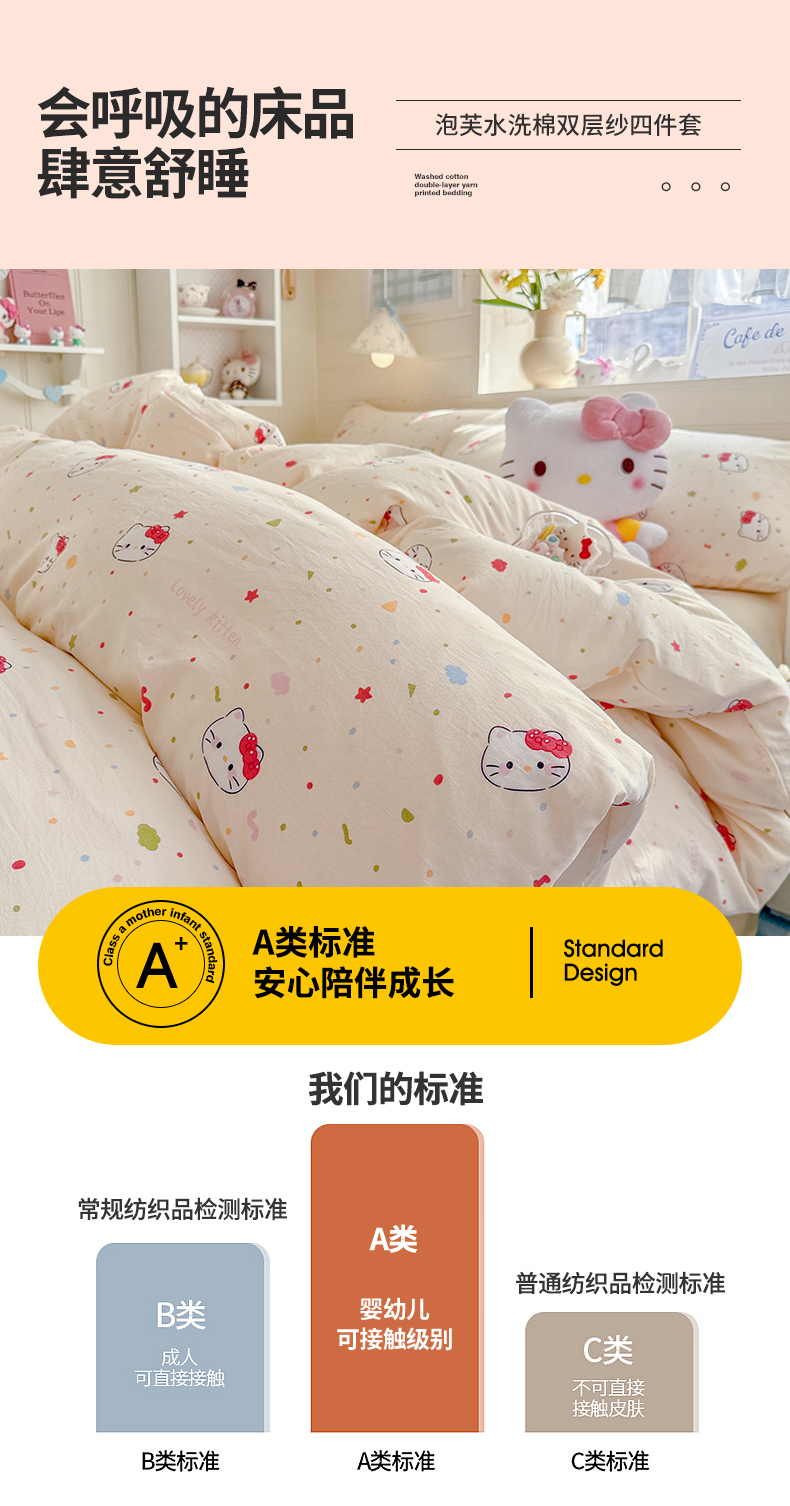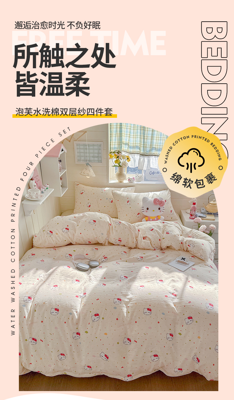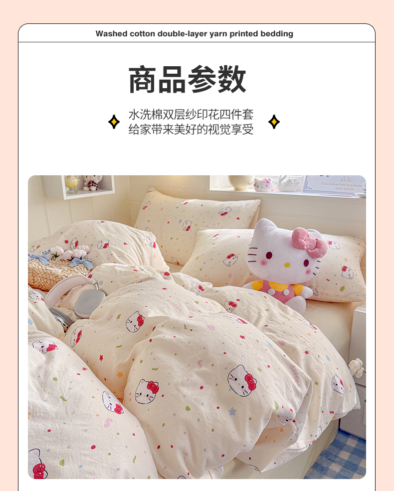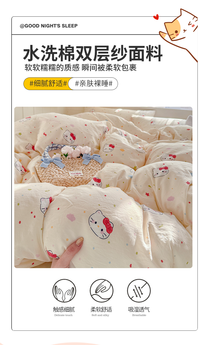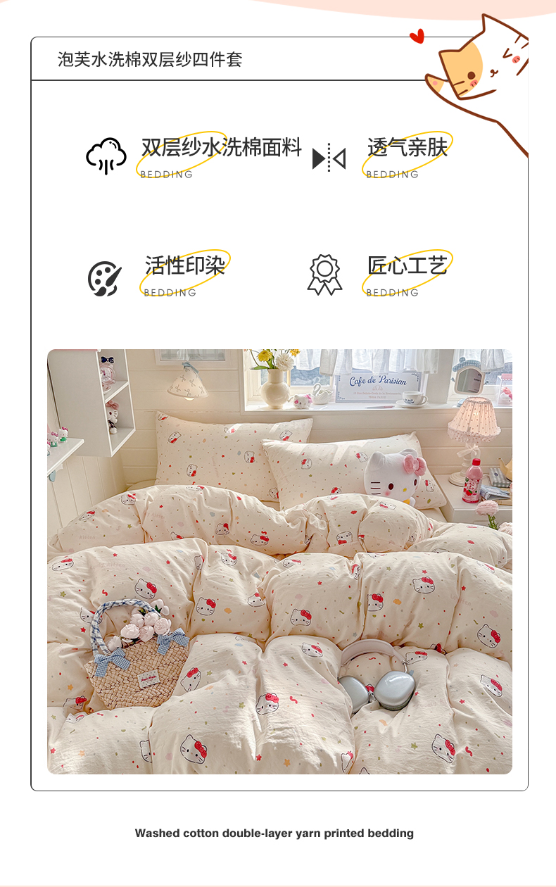 当前位置: 91家纺网 > 商品网购 > 床品套件 > 四件套 > 其它四件套 > 罗亿家纺 2026年新款泡芙水洗棉双层纱四件套 芝士奶猫