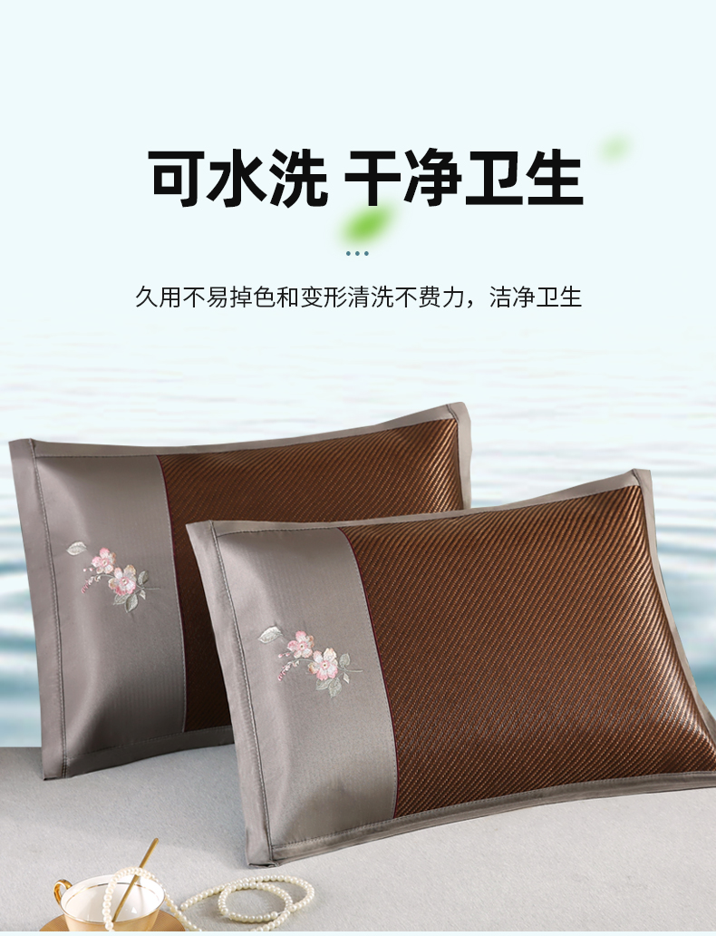 商品名称:小牛席业 2026新款冰藤夏凉枕套【中式刺绣】 斜纹冰藤黑咖