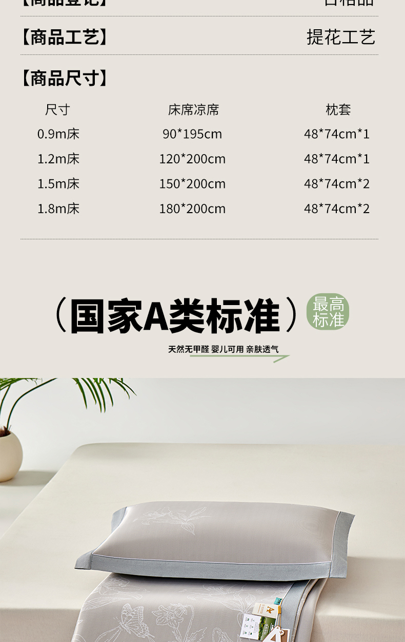 180x200cm凉席+枕套一对
