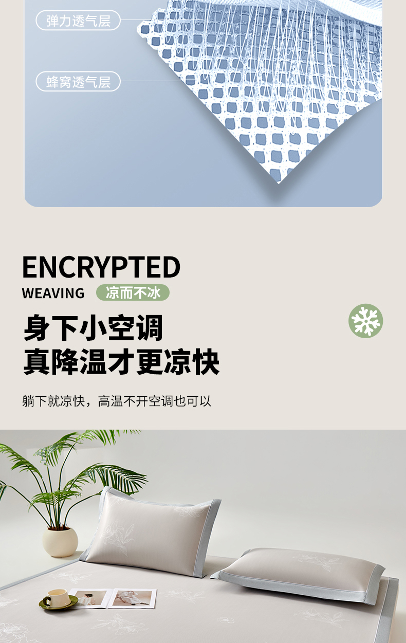 (总)小牛席业 2026新款小冰块大象凉感冰丝席凉席竹席藤席冰藤席乳胶席豆豆席,粉色,香槟,灰色,绿色,蓝色