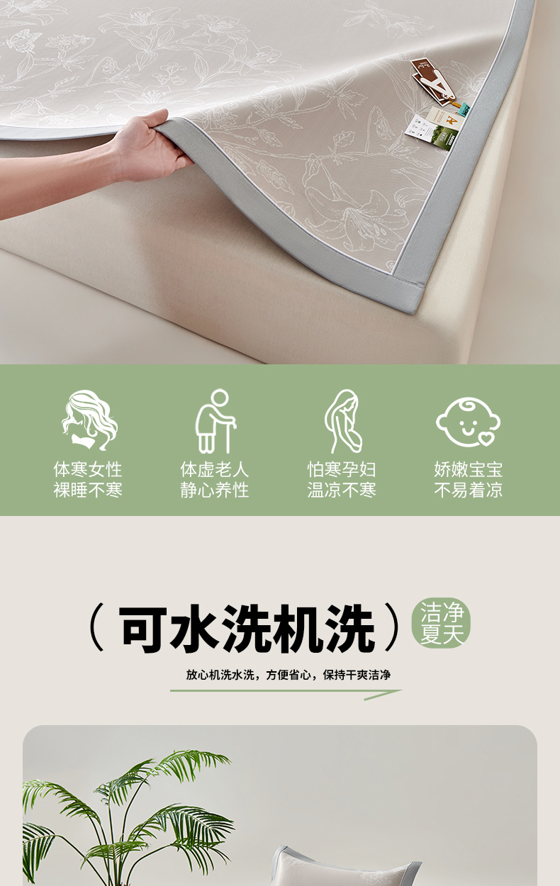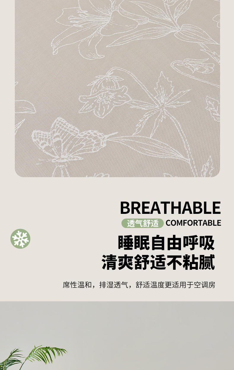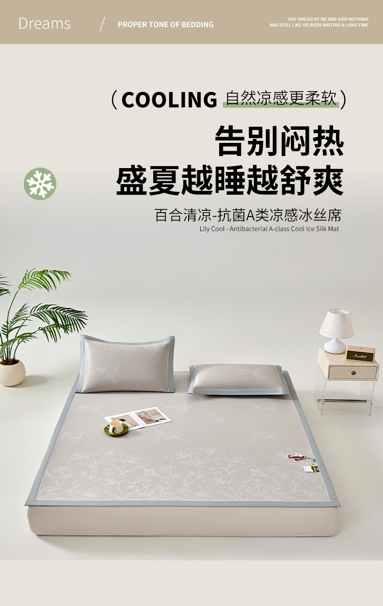 商品名称:小牛席业 2026新款【实拍风格】双PE凉感-百合清凉冰丝席系列 香槟