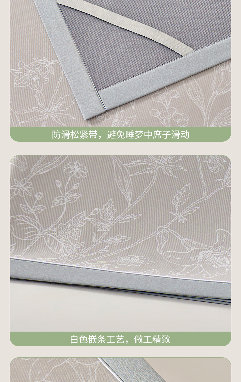(总)2023新款超精密冰丝席-小斜纹系列-床笠款藤席凉席竹席,粉色,蓝色,绿色,银灰
