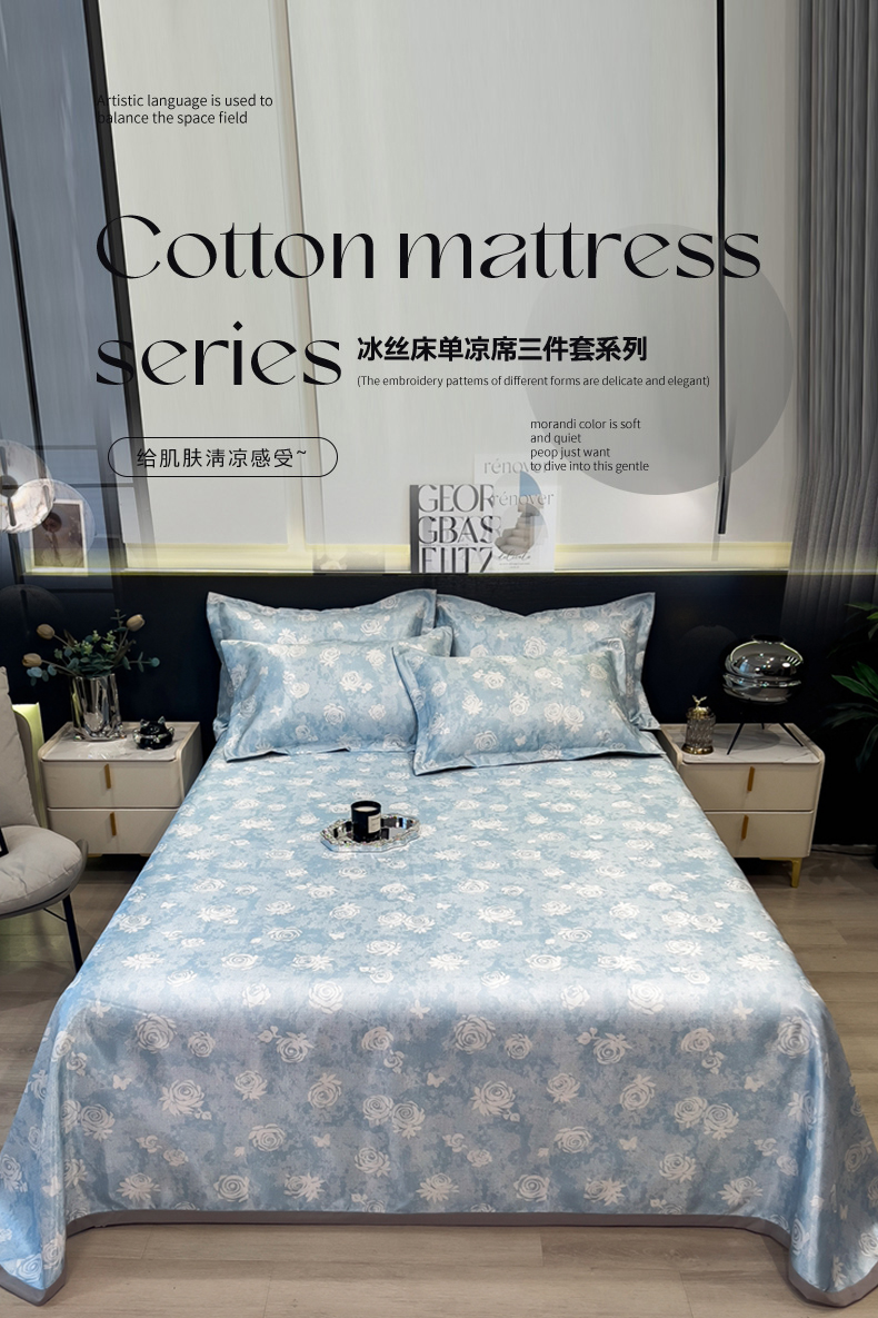 许林 2026新款冰丝凉席床单款凉席三件套 朵真,朵真