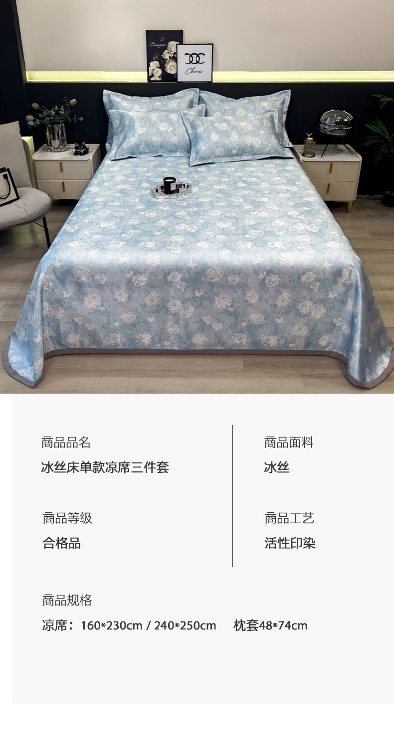商品名称:许林 2026新款冰丝凉席床单款凉席三件套 初墨