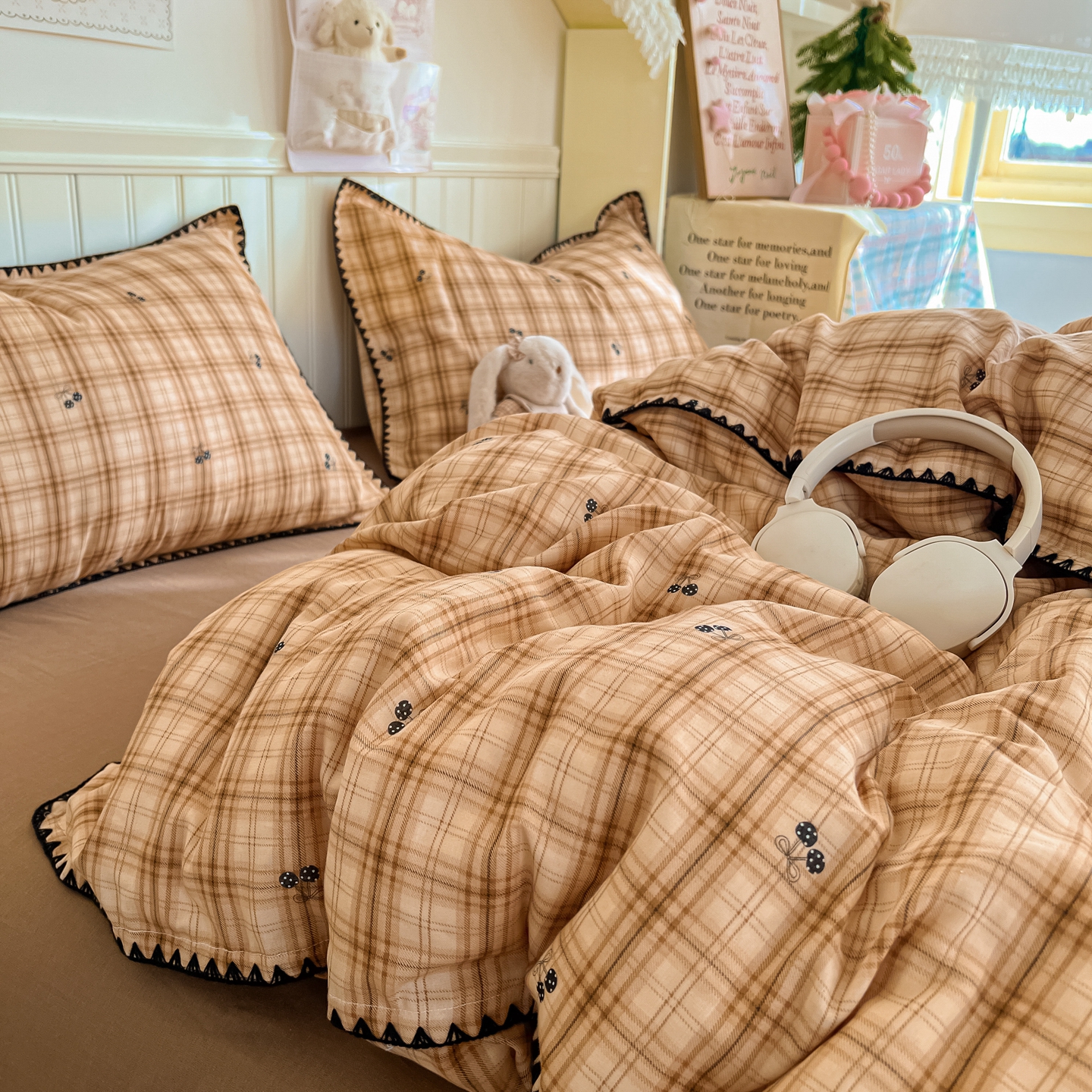 当前位置: 91家纺网 > 商品网购 > 床品套件 > 四件套 > 全棉普通四件套 > 金丝鸟家纺 2026新款全棉纯棉双层纱贝壳边款四件套 焦糖樱桃 灰