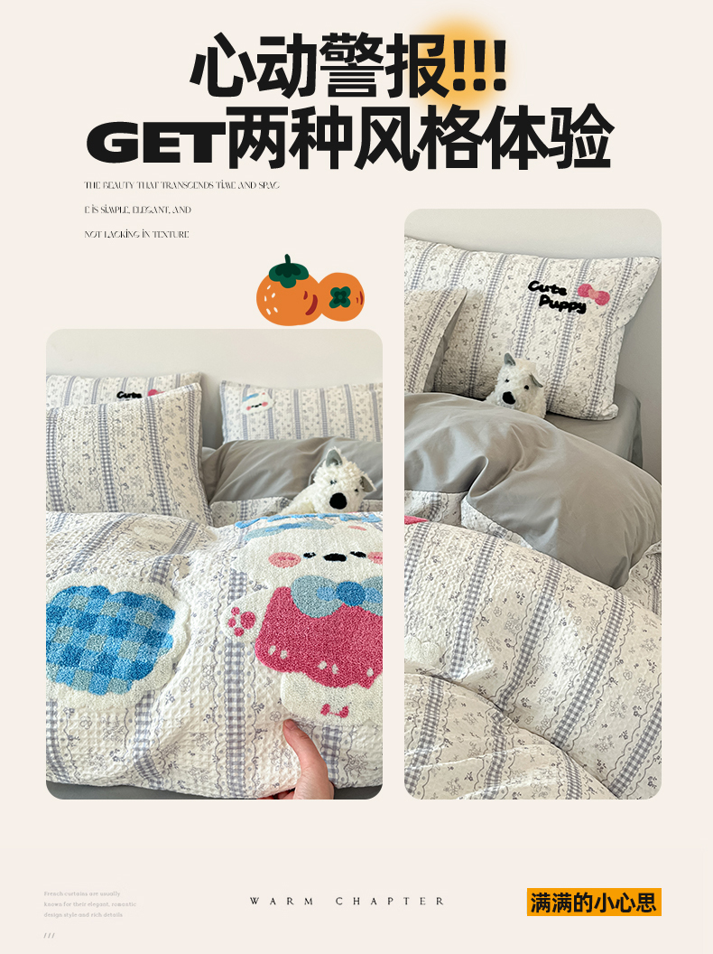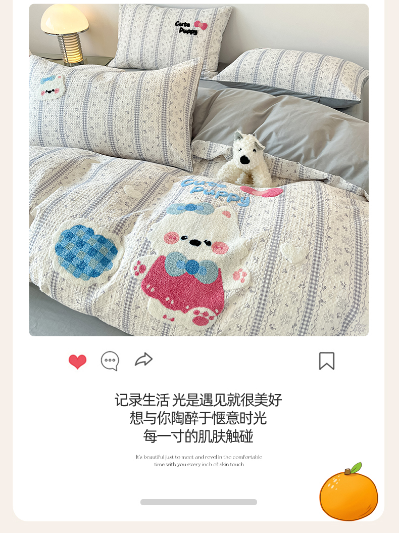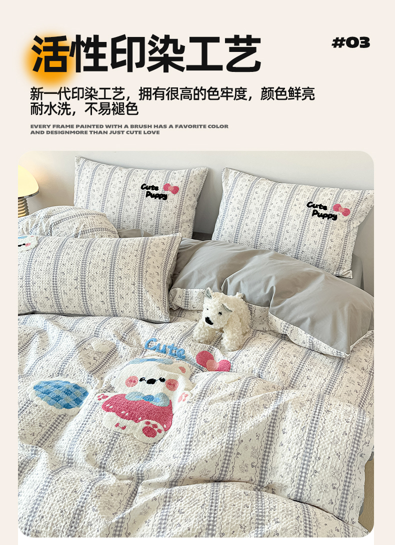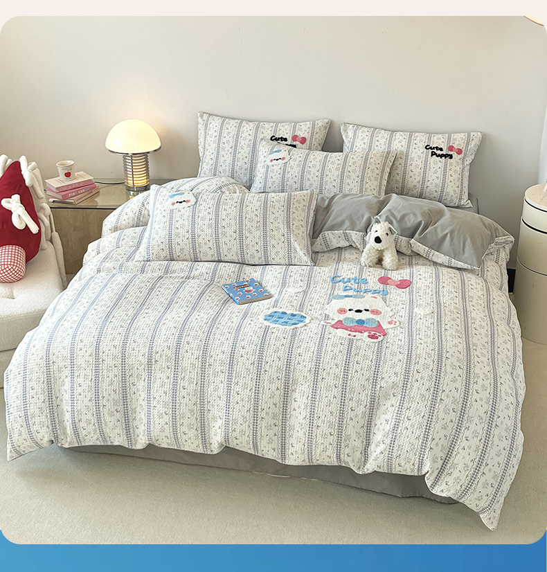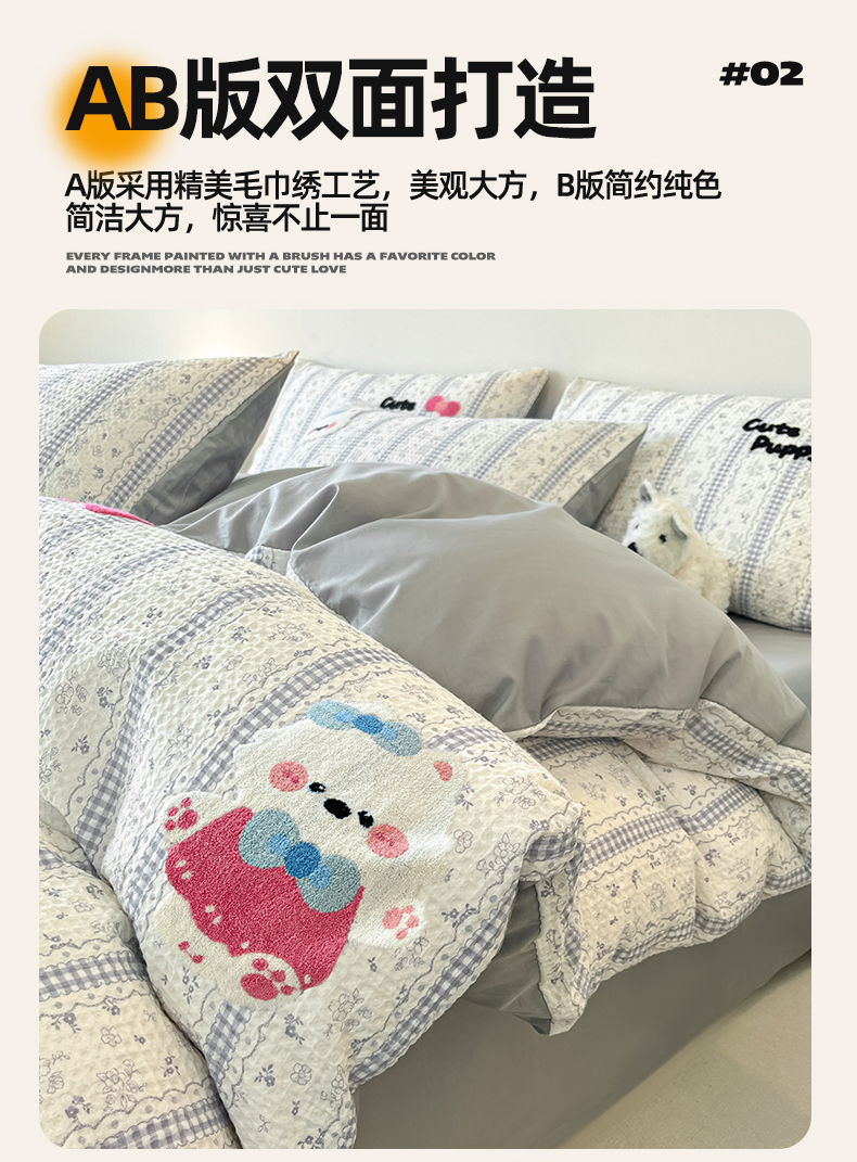 当前位置: 91家纺网 > 商品网购 > 床品套件 > 四件套 > 全棉普通四件套 > 眷恋家纺 2026新款全棉纯棉A版华夫格B版40支毛巾绣四件套 小狗宝宝