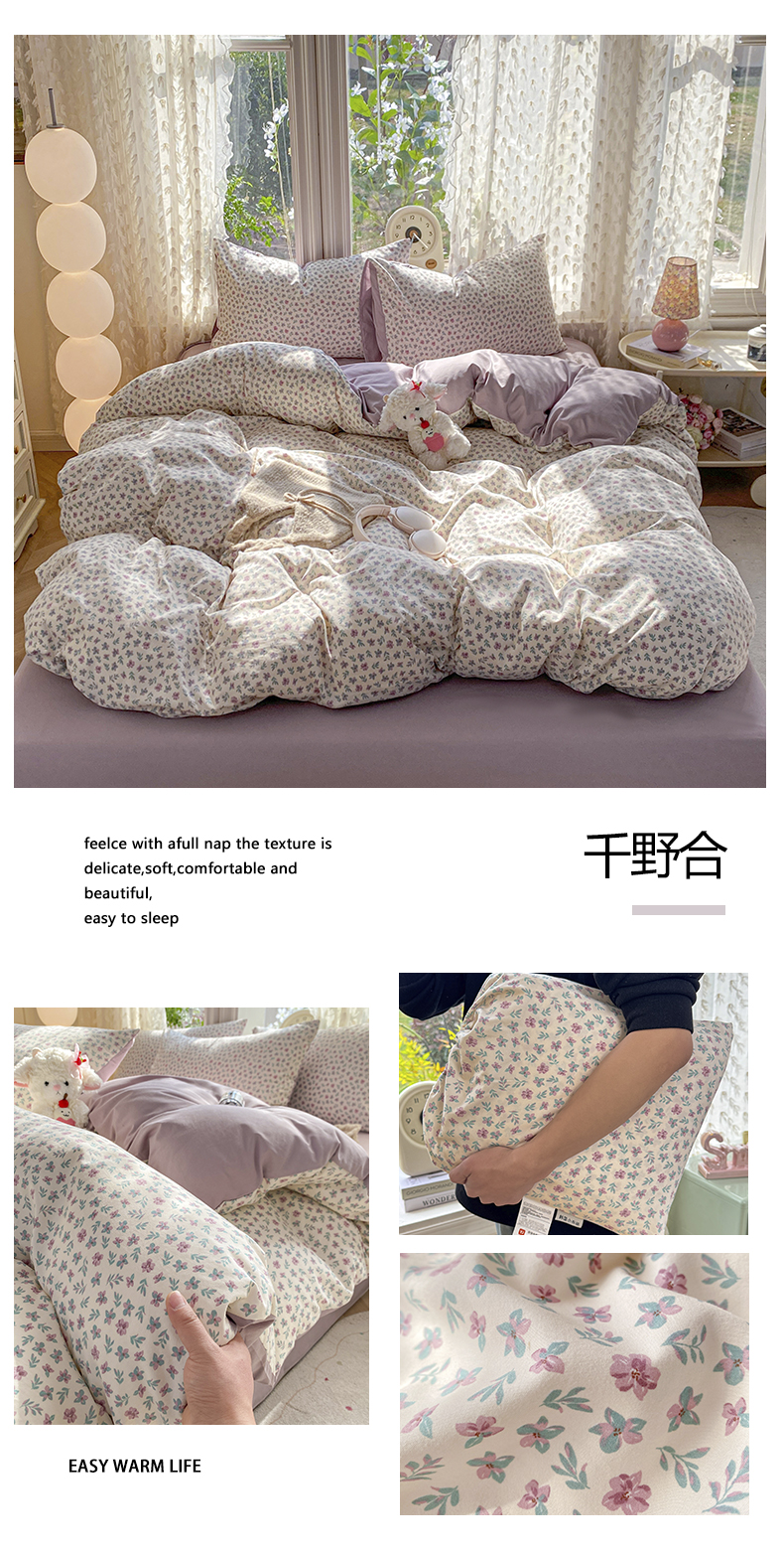 商品名称:豫见家纺 2026新款古法水洗仿棉云感纱四件套 千野合