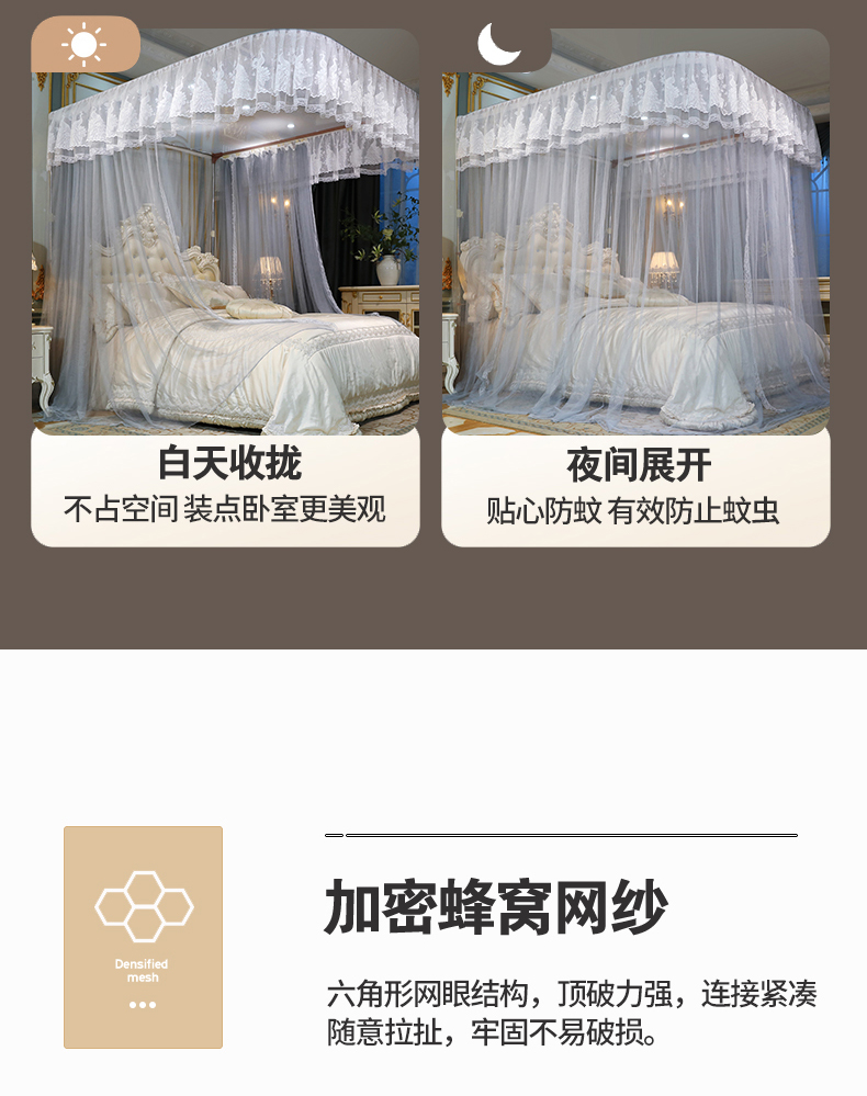 (总)舞夜盛世 【欧式风情】2026新款落地三开门宫廷蚊帐,欧式情怀-黄色,欧式情怀-灰色,欧式情怀-玉色,欧式情怀-紫色