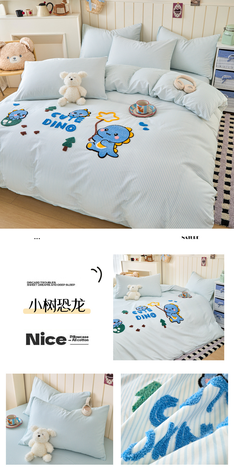 (总)倾慕家纺 2026新款全棉卡通毛巾绣系列单被套,彩虹马,格子小狗,欢乐企鹅,森林小熊,兔兔熊,小树恐龙,小兔女孩