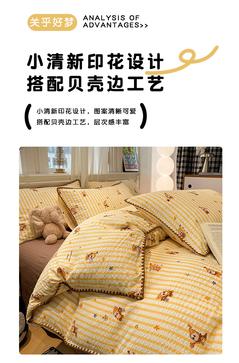 商品名称:仟网汇 2026新款云感泡芙棉小清新印花贝壳边四件套 哈喽星人
