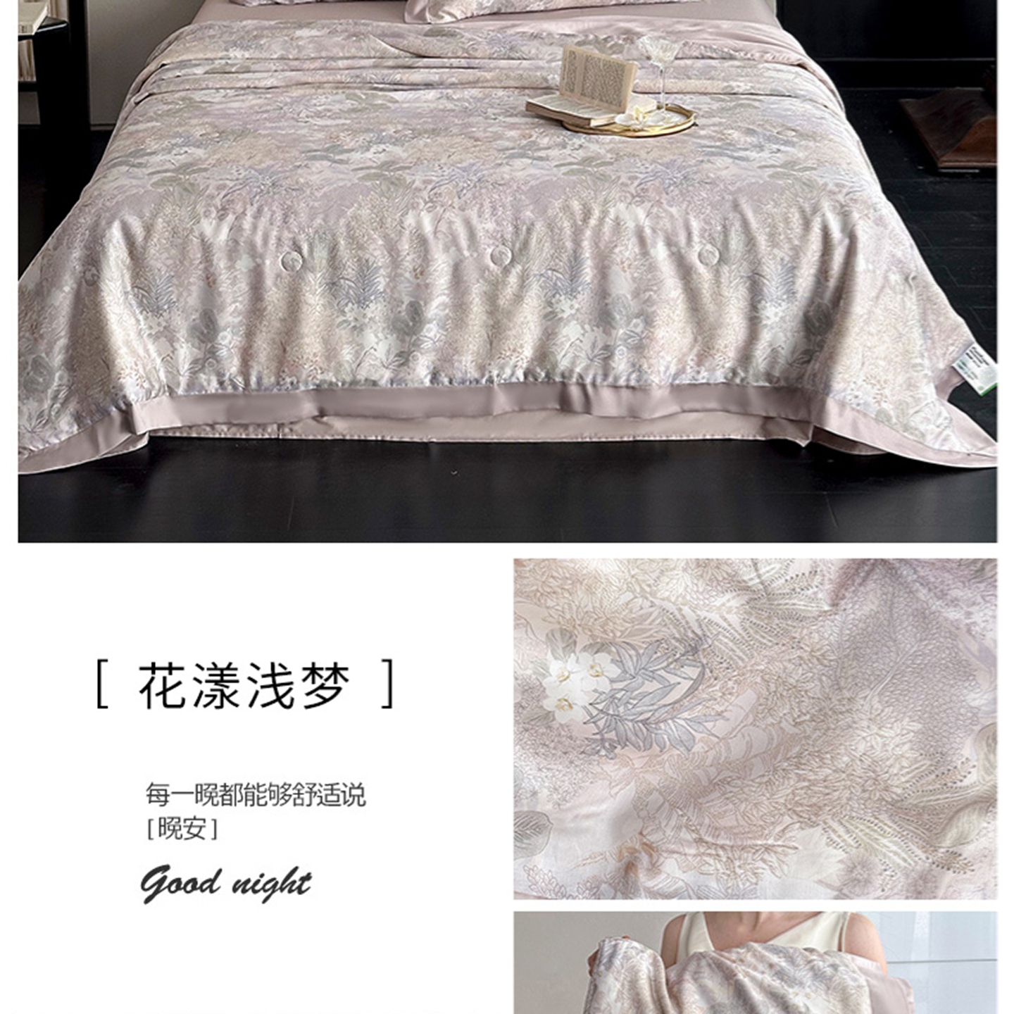 (总)黛舒家居 2026年春夏款80S天丝夏被夏被四件套,碧涧清岚,花漾浅梦,浅绿蔓影,青雾凝香,雾紫蝶影,云屿晨纱