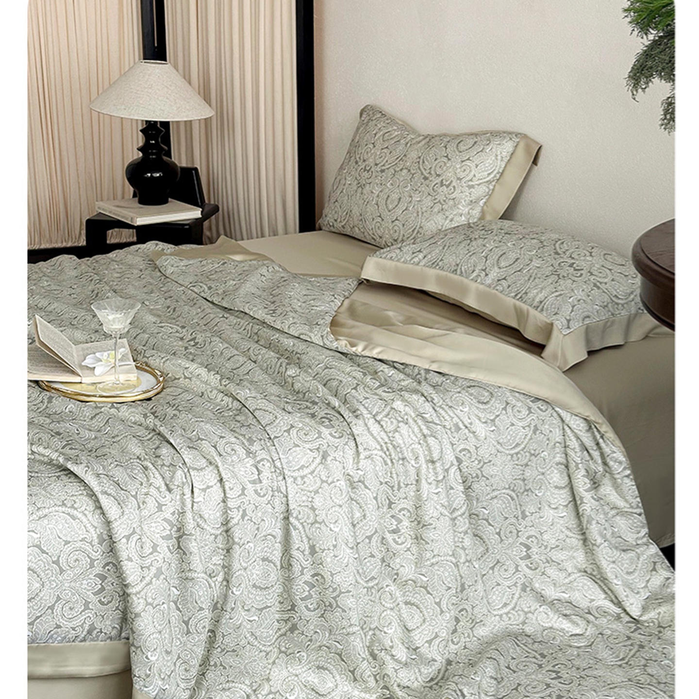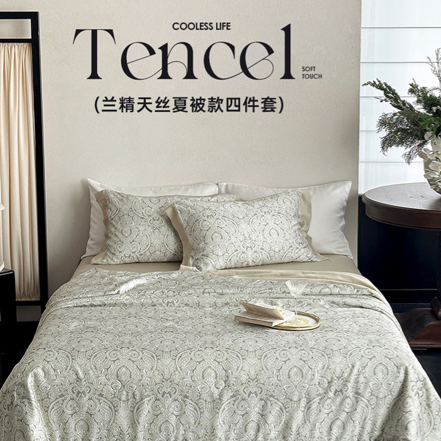 黛舒家居 2026年春夏款80S天丝夏被夏被四件套 浅绿蔓影