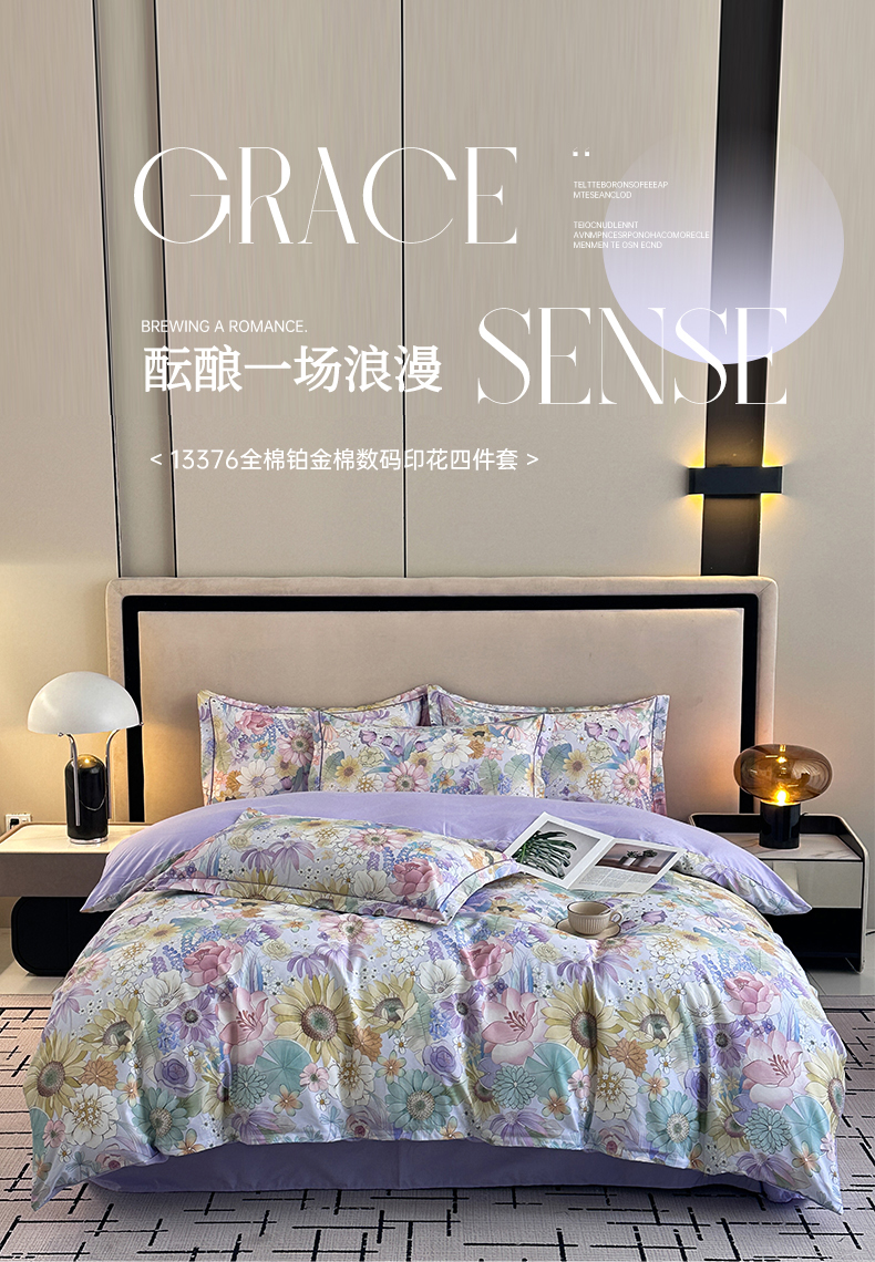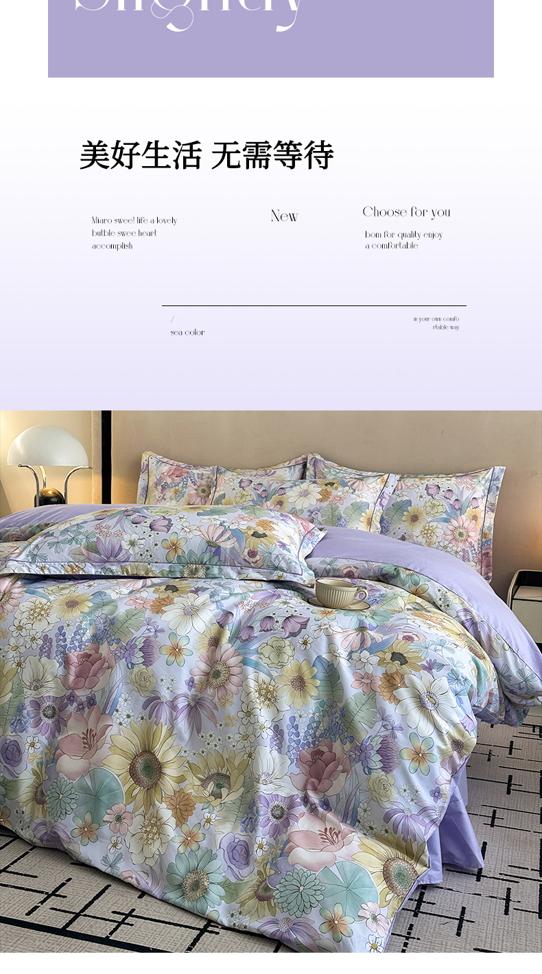 当前位置: 91家纺网 > 商品网购 > 床品套件 > 四件套 > 全棉普通四件套 > 眷恋家纺 2026新款全棉春夏铂金棉13376数码印花四件套 普罗旺斯-紫