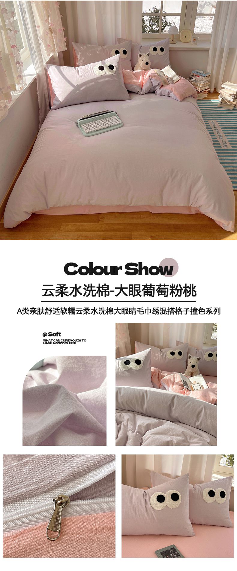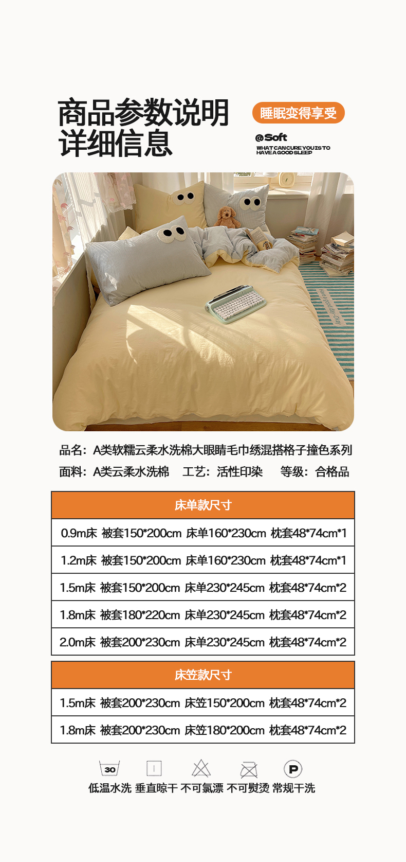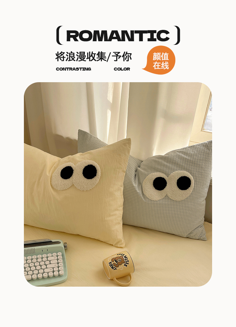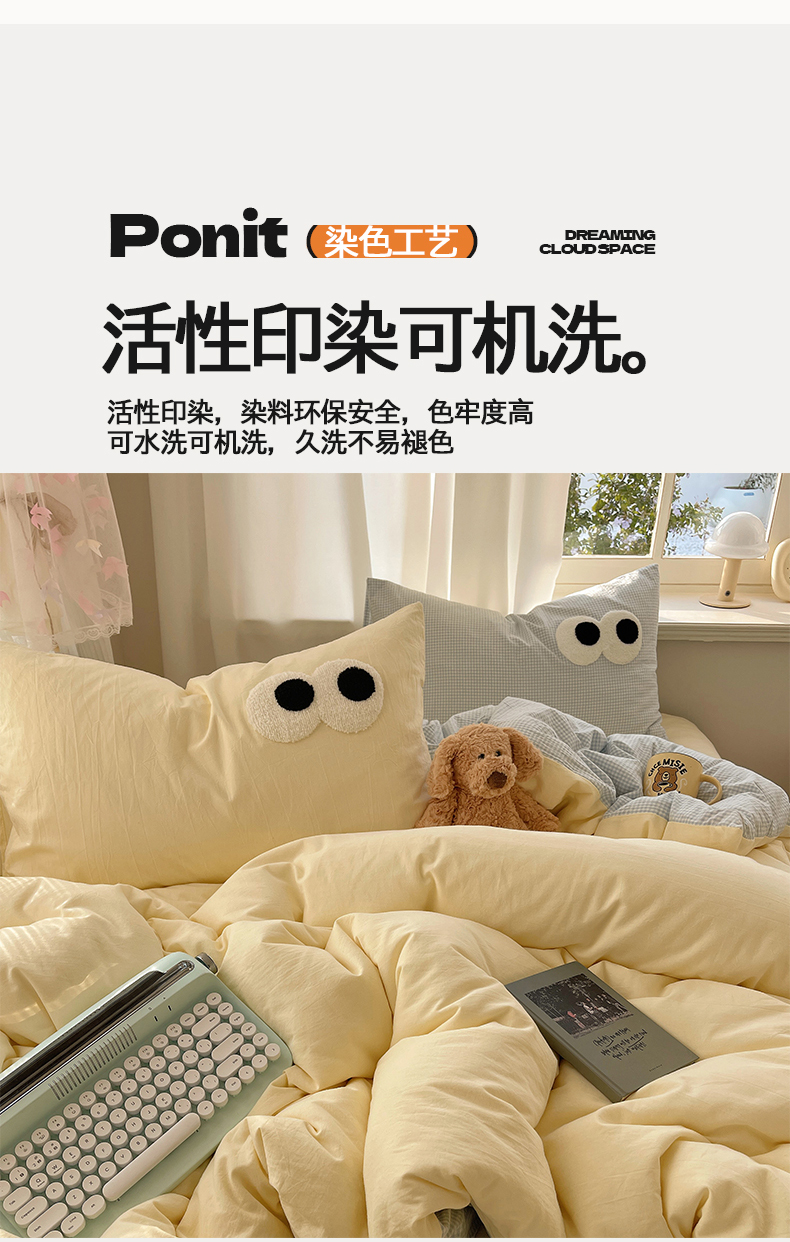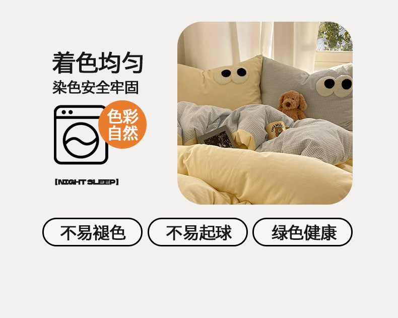 当前位置: 91家纺网 > 商品网购 > 床品套件 > 四件套 > 毛巾绣四件套 > 桃心家居 2026新款A类亲肤舒适软糯云柔水洗棉大眼睛毛巾绣混搭格子撞色系列四件套 云柔水洗棉-大眼奶黄小蓝格