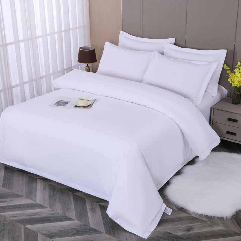 当前位置: 91家纺网 > 商品网购 > 床品套件 > 四件套 > 化纤活性四件套 > 好杰 2026新款加厚加密酒店布草织带四件套 纯白