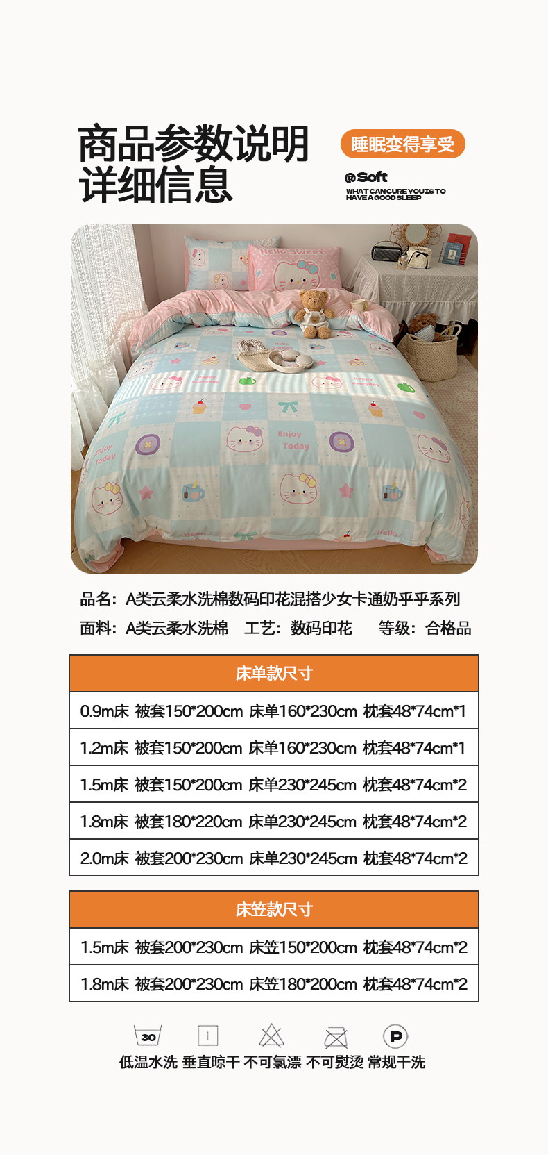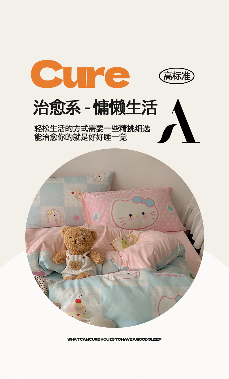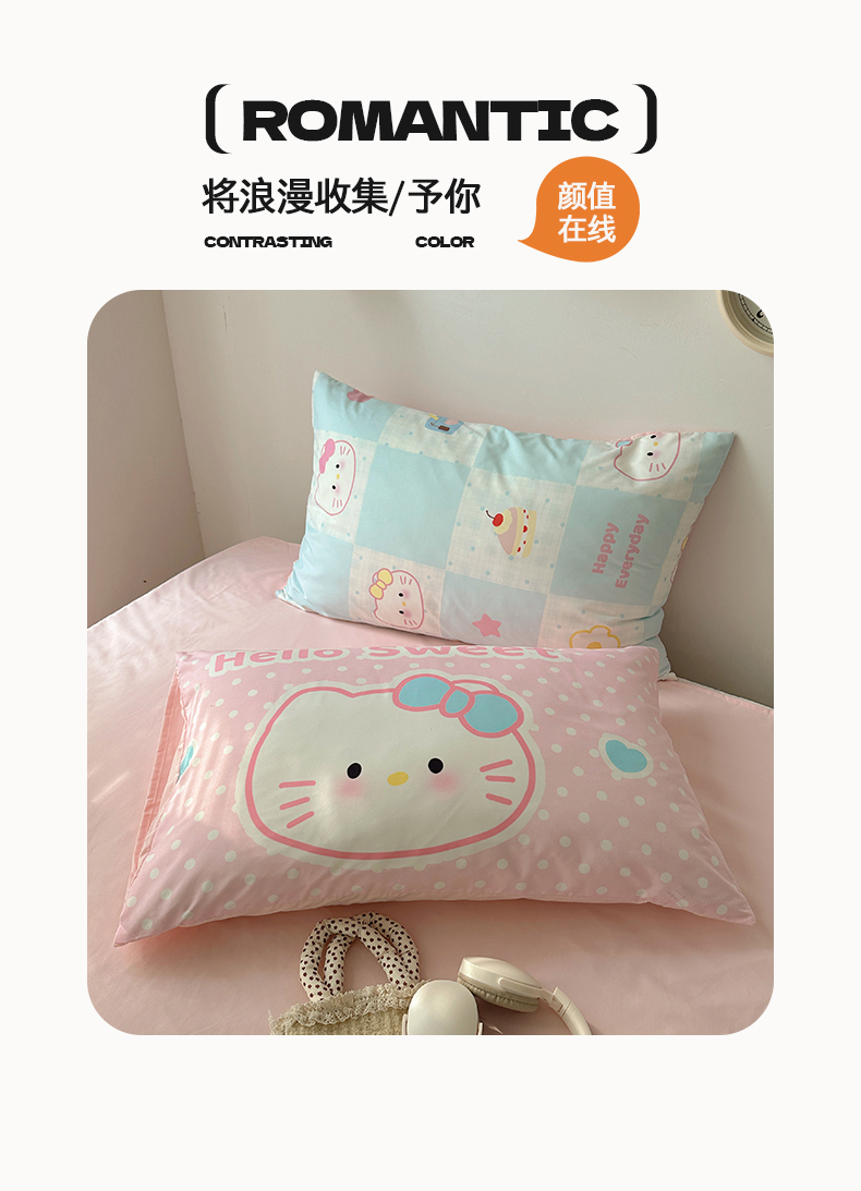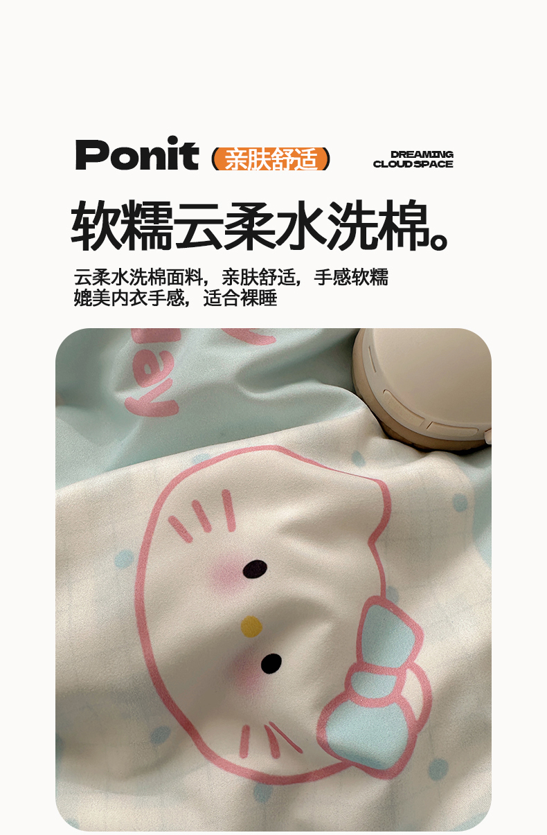 当前位置: 91家纺网 > 商品网购 > 床品套件 > 四件套 > 水洗棉四件套 > 桃心家居 2026新款A类亲肤舒适软糯云柔水洗棉数码印花混搭少女卡通奶乎乎系列四件套 云柔水洗棉-甜心蓝格猫