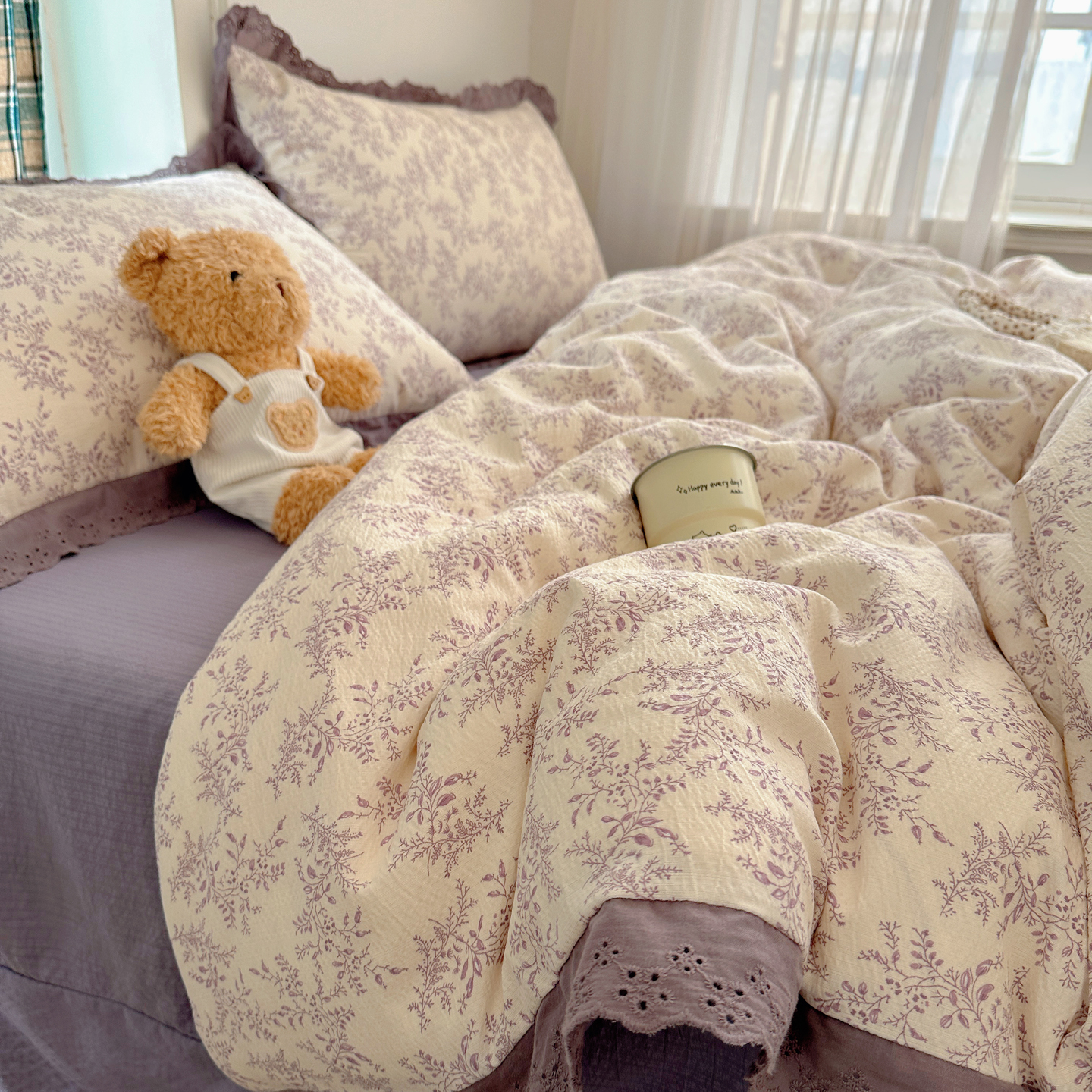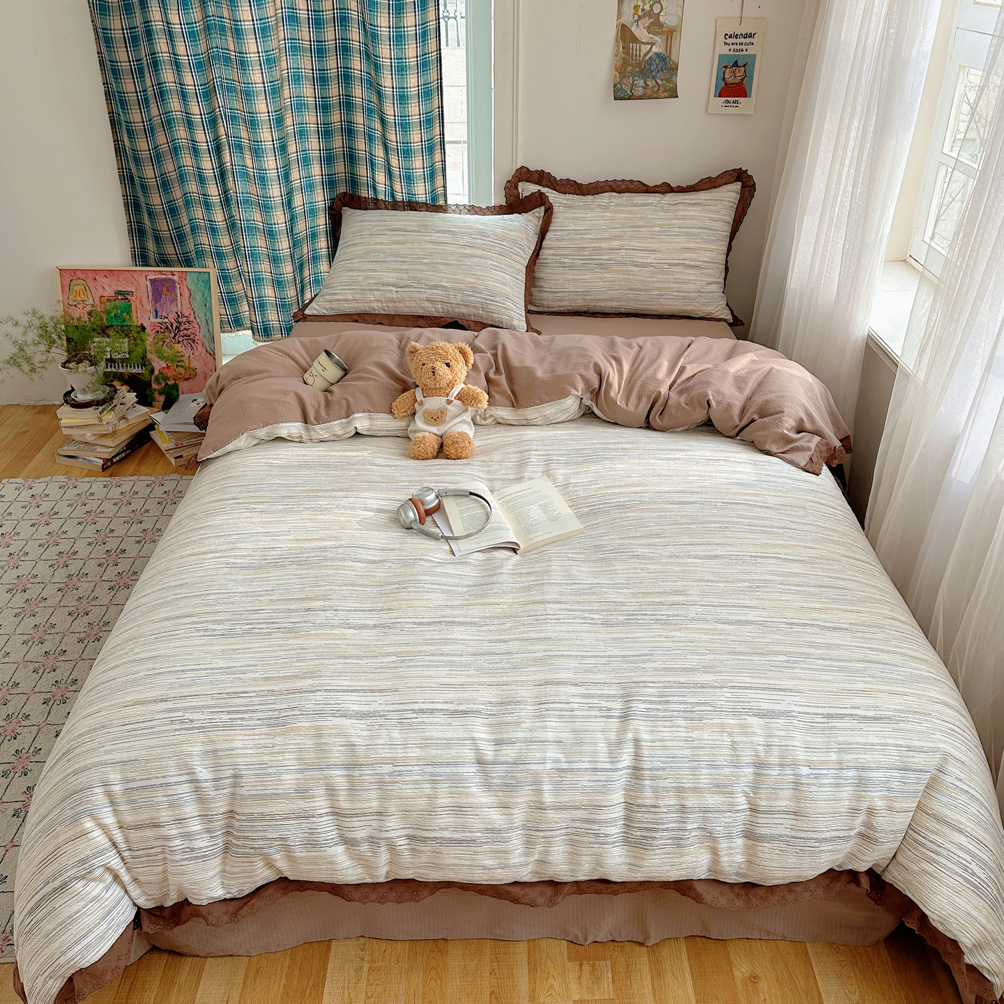 一比一家纺 2026新款彩色花边木棉皱皱纱四件套 赫本