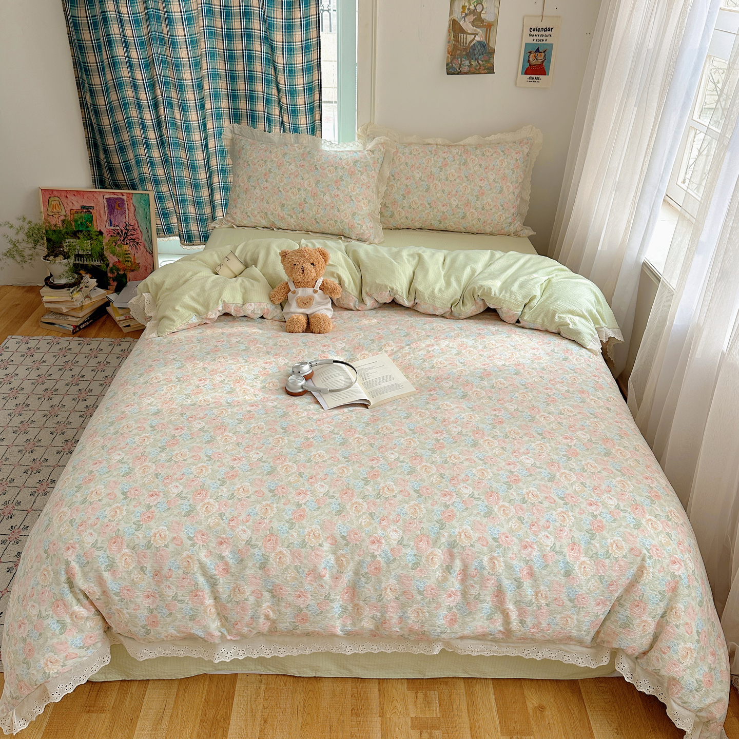 商品名称:一比一家纺 2026新款彩色花边木棉皱皱纱四件套 赫本