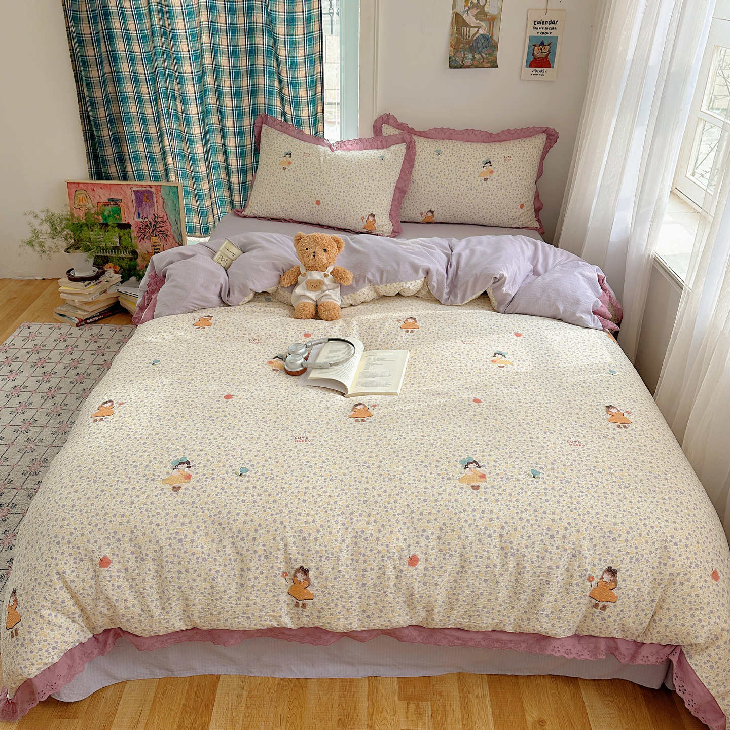(总)一比一家纺 2026新款全棉双层纱四件套,费尔岛小马,马上有钱,粉啵啵,星星仔,安琪拉兔,草莓酱,狗狗派对,维尼熊,草莓,海底世界,花枝兔,欢喜萌宠,快乐小狗,黎漫,南瓜派,若梦,甜蜜时光,小确幸,幸运喵,樱桃丸子,紫葡萄,初夏,假日小熊,凯伦,恐龙派对,抹茶啵啵,奶萌狗,桃之夭夭,小晴天,星星世界,芋泥啵啵,仲夏,紫色幻蝶