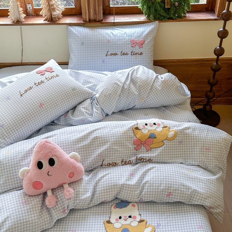 (总)布柔 2026春夏新款13070纯棉全棉印花绣花床笠三件套四件套,曲奇粉,曲奇黄,曲奇蓝