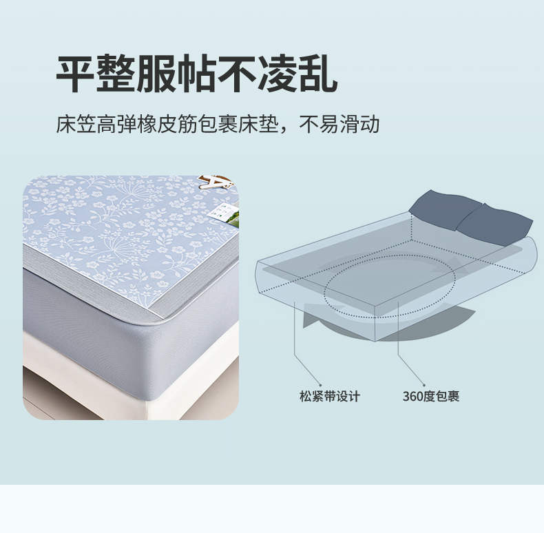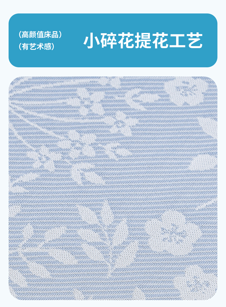 小牛席业 2026春夏新款【实拍风格】PE凉感小碎花提花冰丝席凉席席子(床笠款) 蓝色