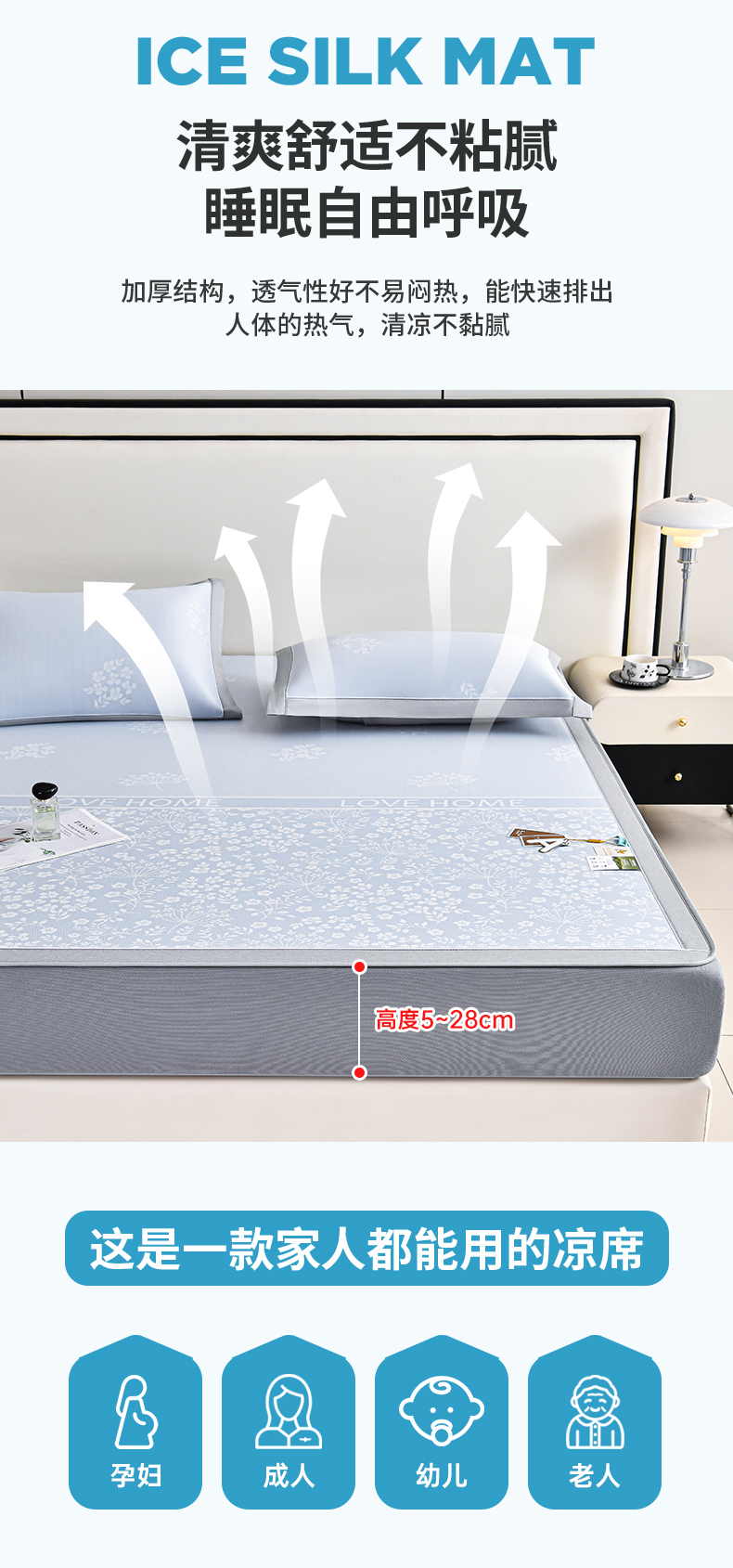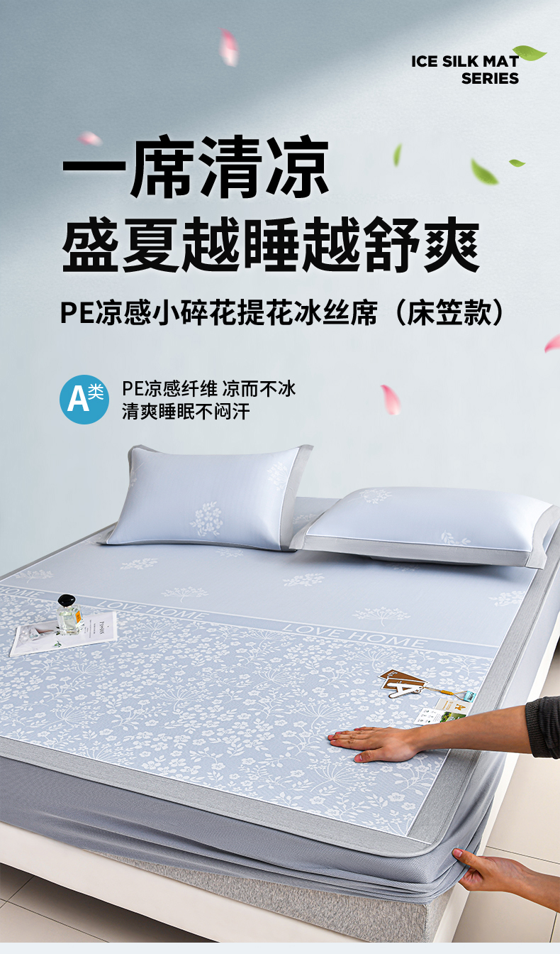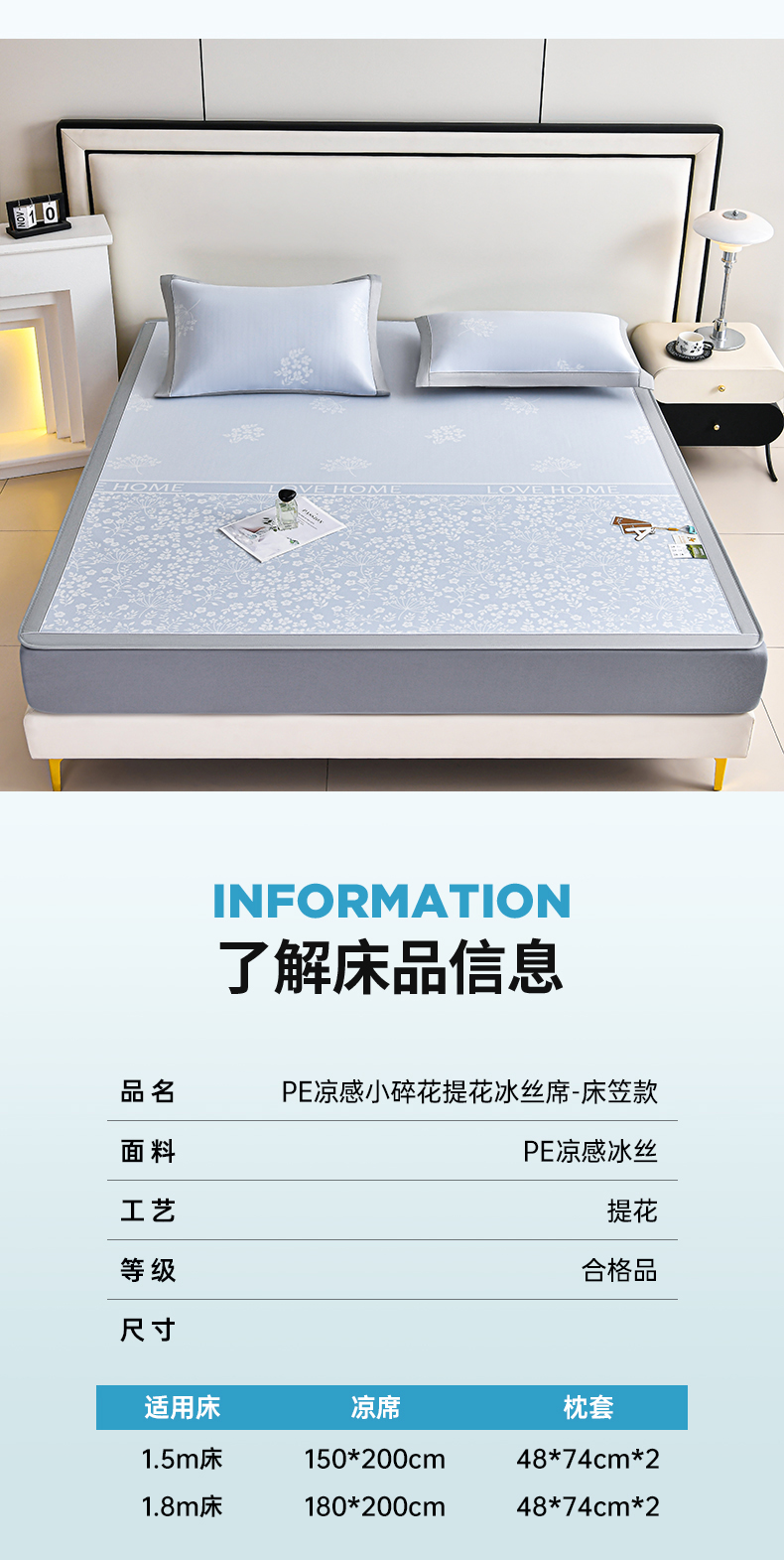 (总)小牛席业 2026春夏新款【实拍风格】PE凉感小碎花提花冰丝席凉席席子(床笠款),灰色,粉色,蓝色,抹茶,香槟