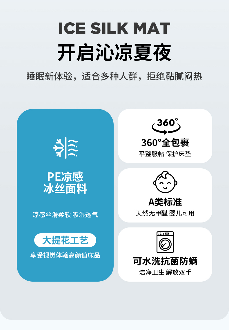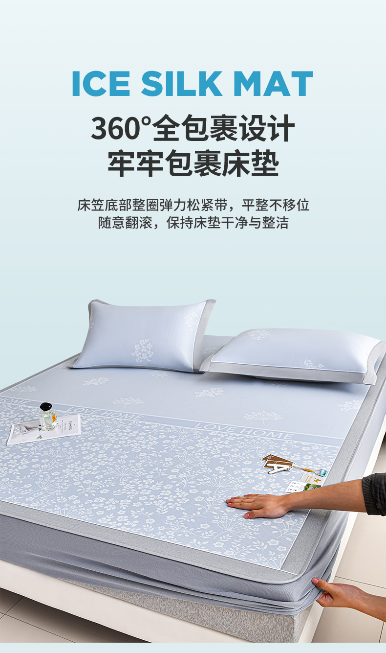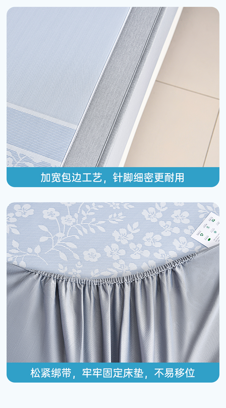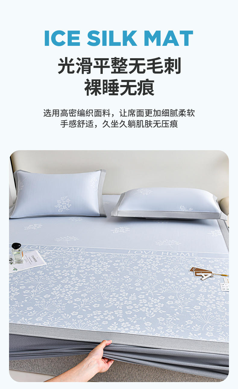 (总)小牛席业 2026春夏新款【实拍风格】PE凉感小碎花提花冰丝席凉席席子(床笠款),灰色,粉色,蓝色,抹茶,香槟