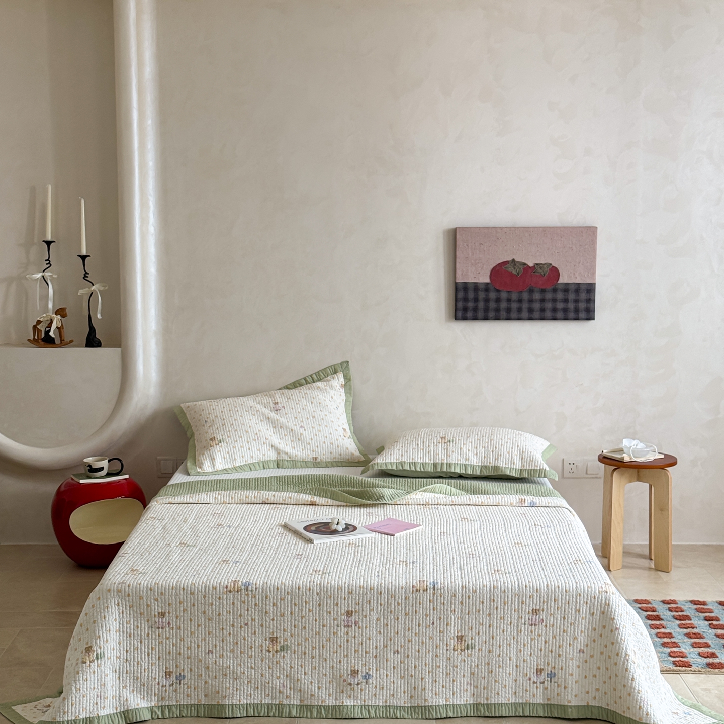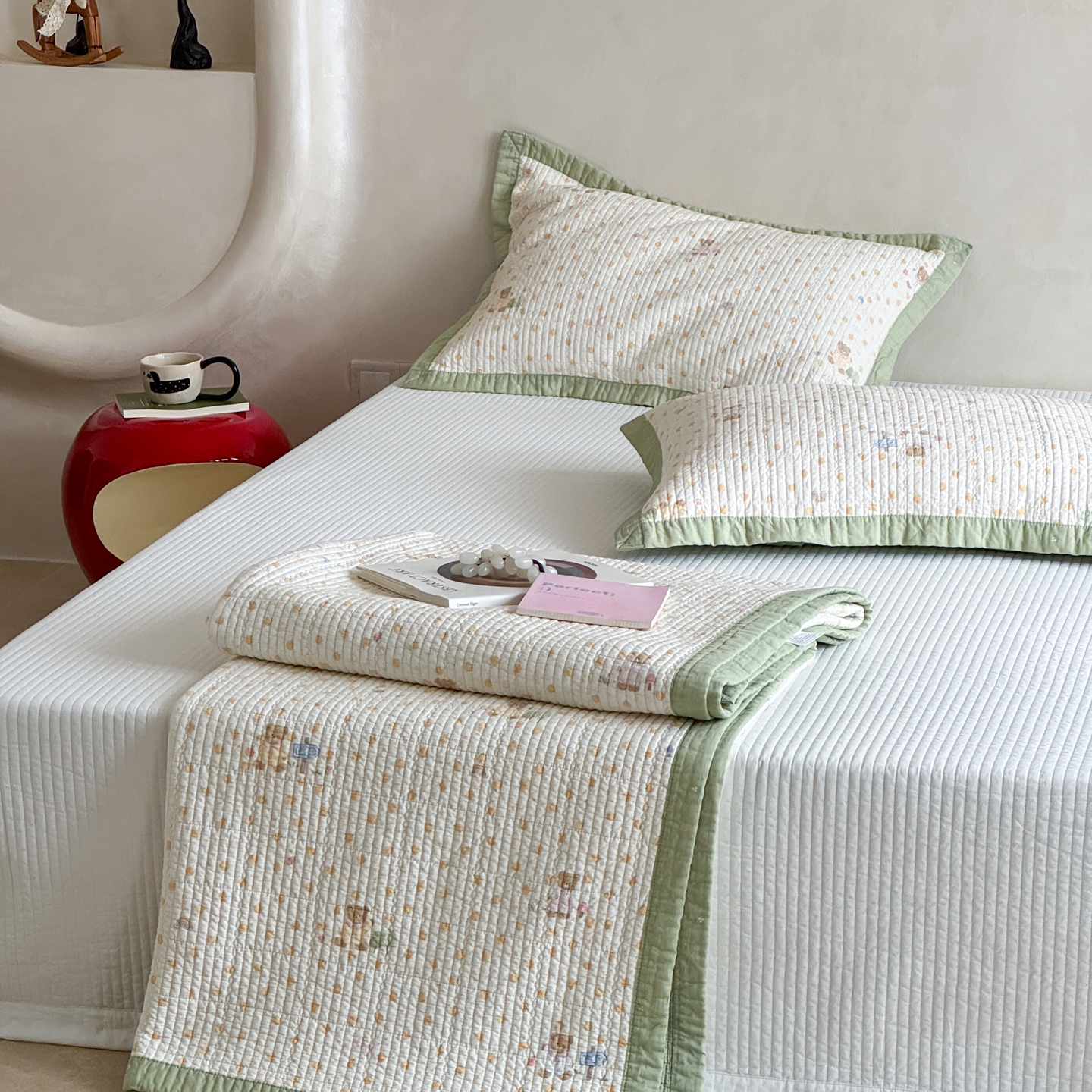 商品名称:床盖工厂店 2026春夏新款双面100%全棉填充80棉花床盖三件套 莓果熊