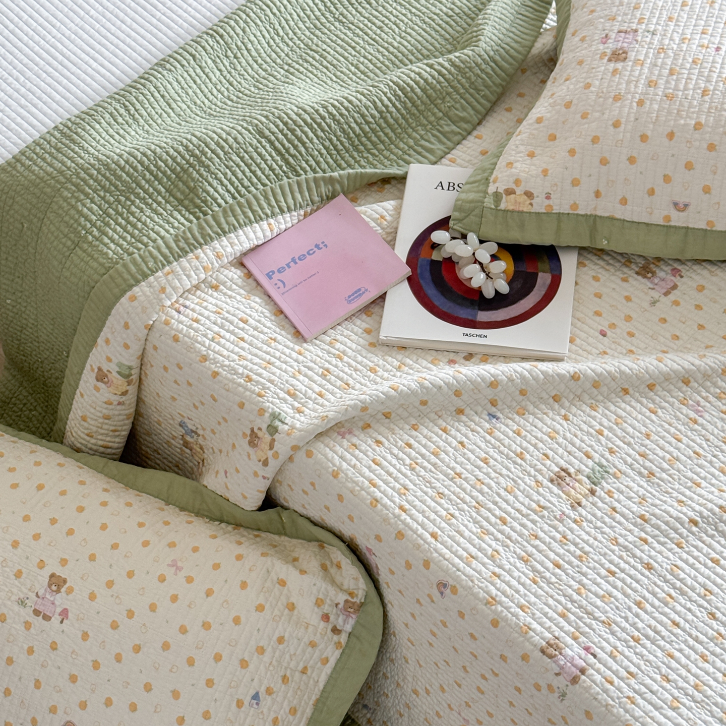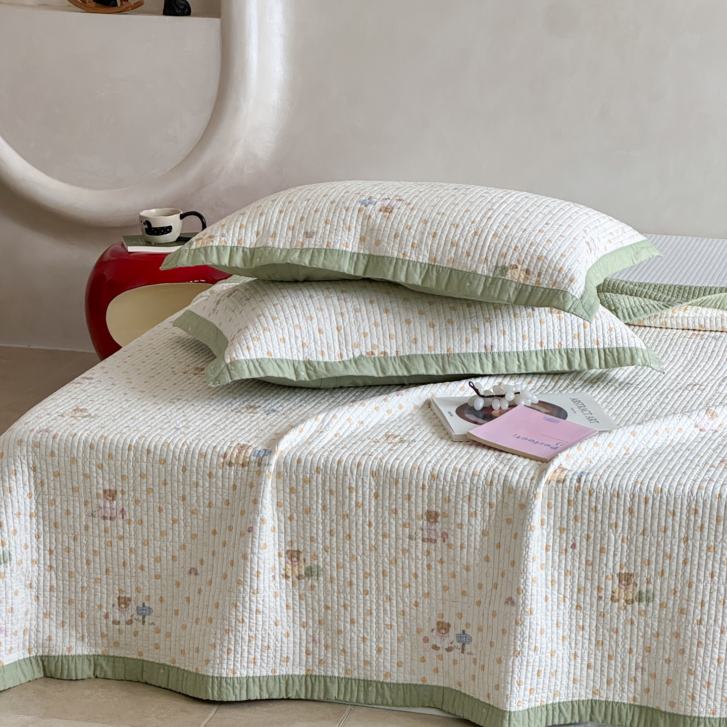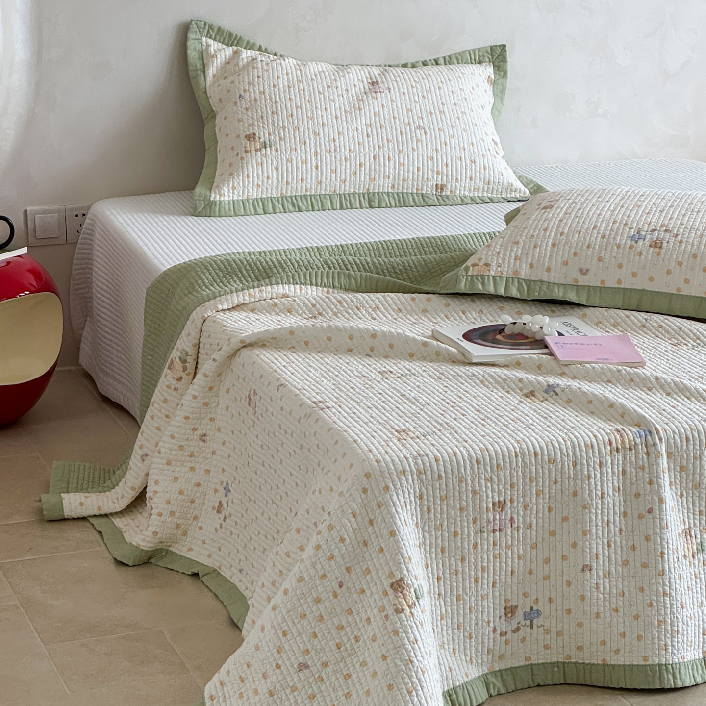 (总)床盖工厂店 2026新款全棉卡通纱布床盖三件套,斑点象 粉,斑点象 兰,嘟比熊,萌星 黄,趣梦鹅 黄,趣梦鹅 绿