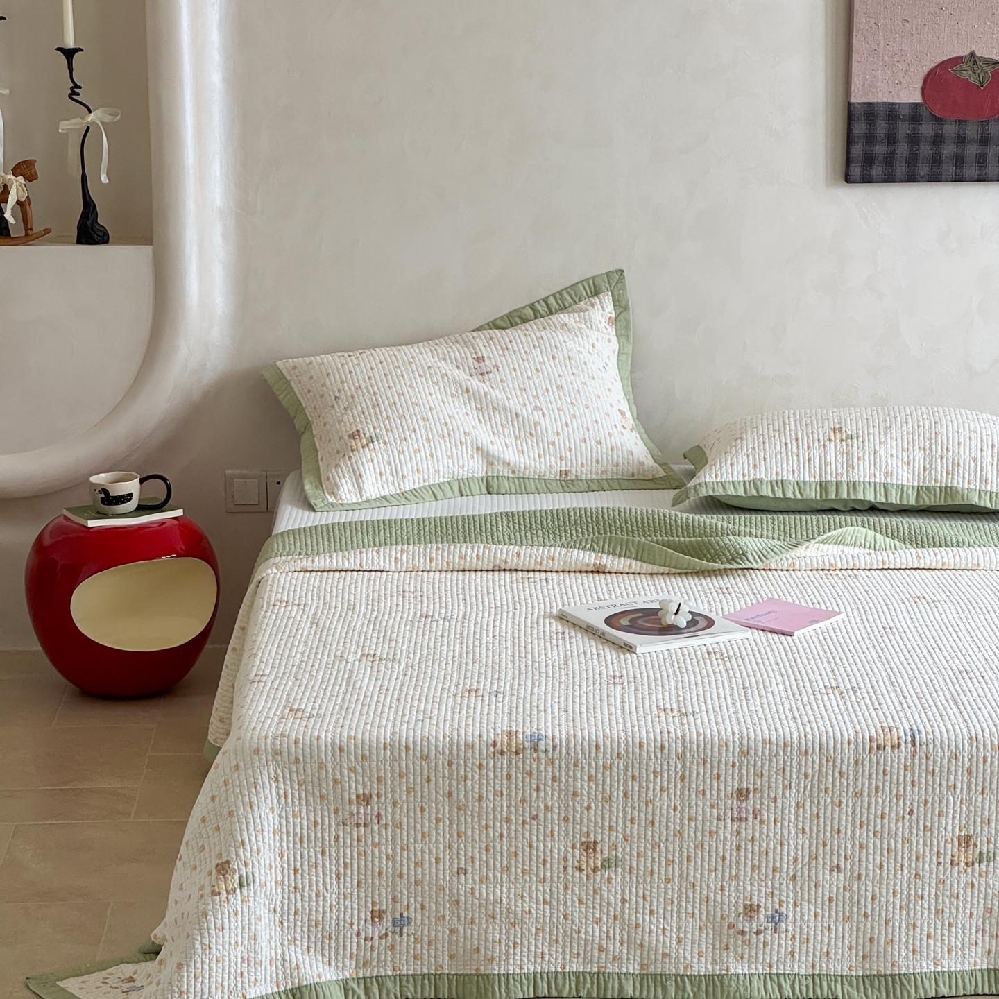 床盖工厂店 2026春夏新款双面100%全棉填充80棉花床盖三件套 莓果熊
