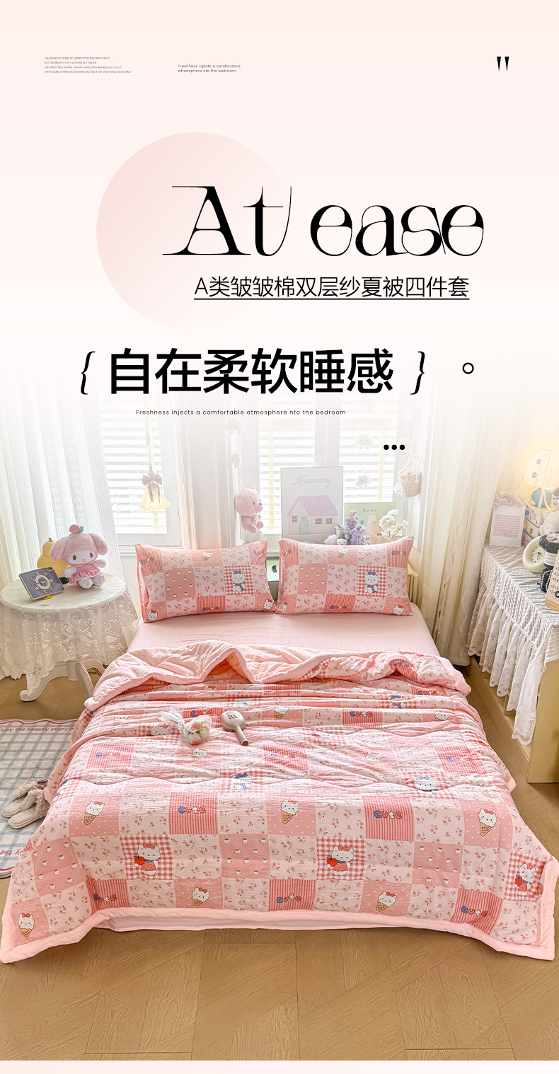 当前位置: 91家纺网 > 商品网购 > 床品套件 > 四件套 > 夏被四件套 > 卡斯诺家纺馆 2026新款皱皱棉双层纱夏被四件套下载文件包含买家秀 花间喵语