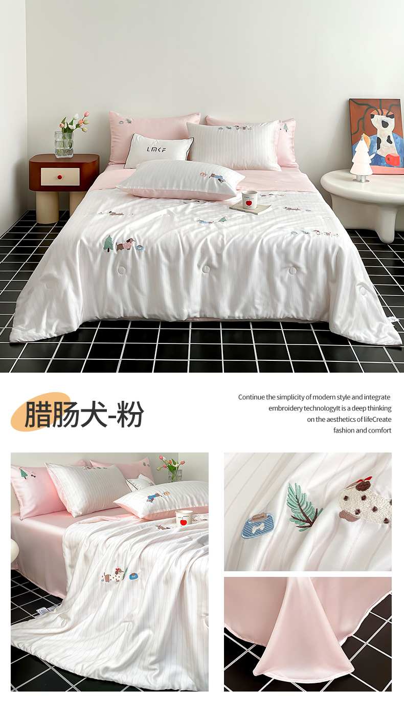 当前位置: 91家纺网 > 商品网购 > 床品套件 > 四件套 > 莱赛尔四件套 > (总)蓝米卡夫 2026夏季新款60S兰精天丝刺绣夏被夏凉被空调被四件套-达克斯腊肠犬